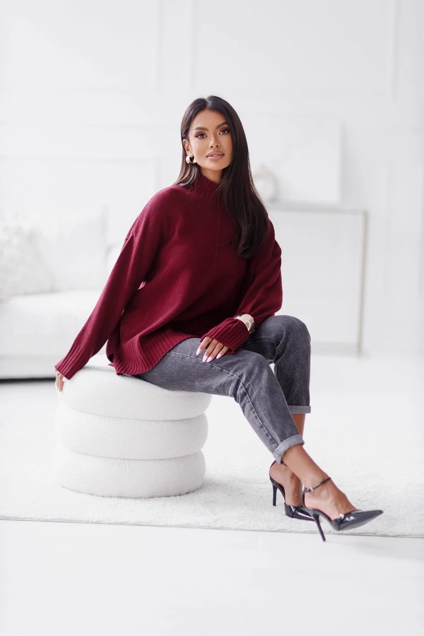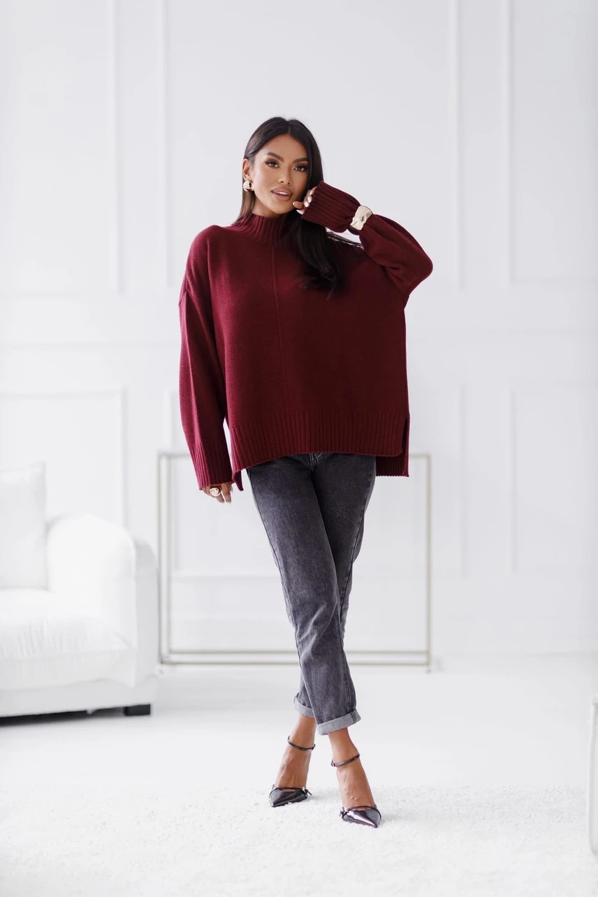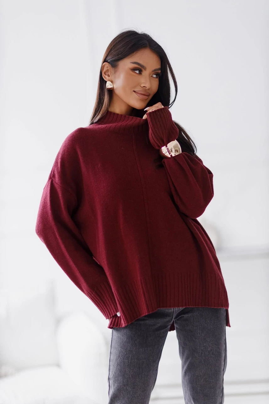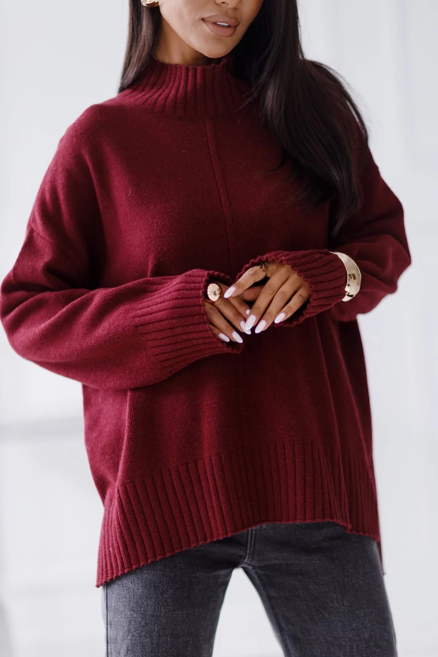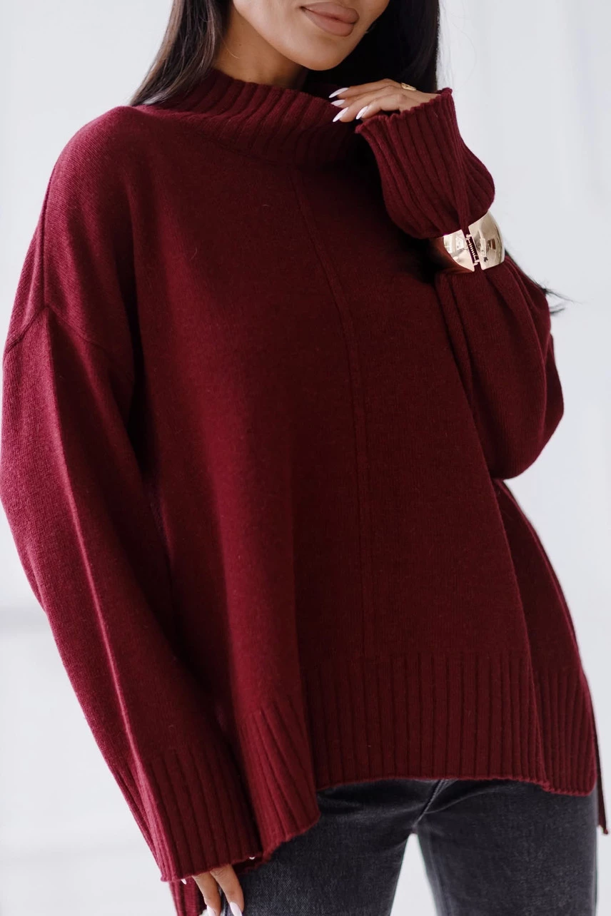 Sweter damski wełniany AURA , bordowy Madame Sue