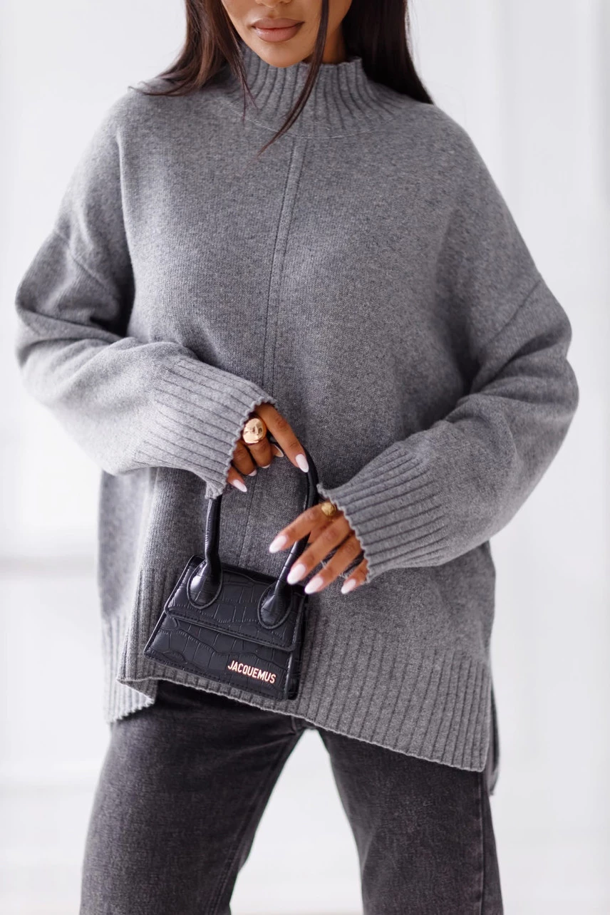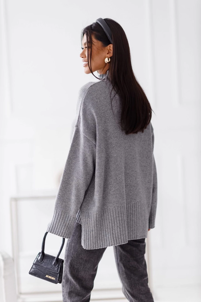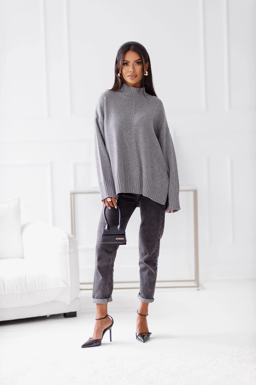 Sweter damski wełniany AURA, ciemny szary Madame Sue