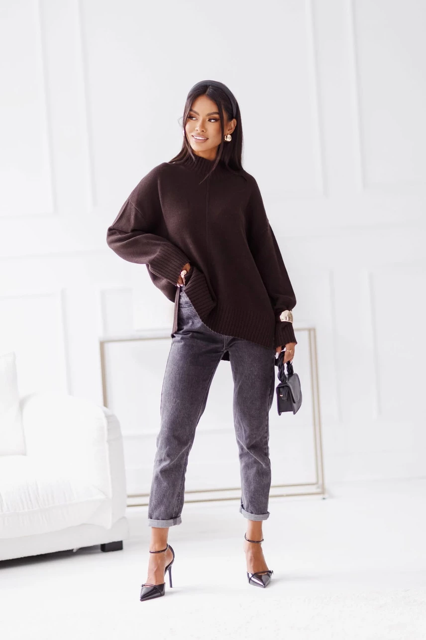 Sweter damski wełniany AURA, czekoladowy Madame Sue