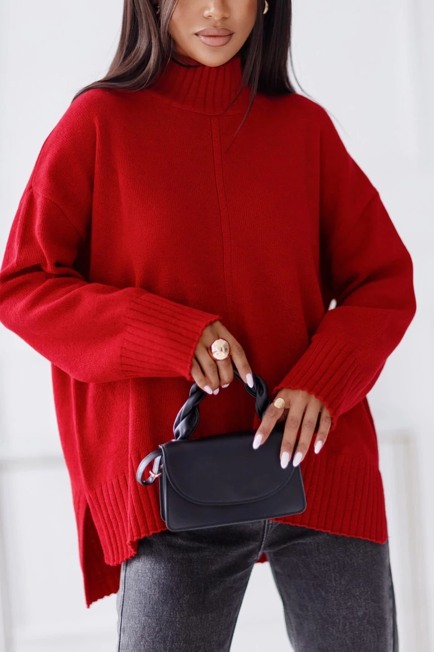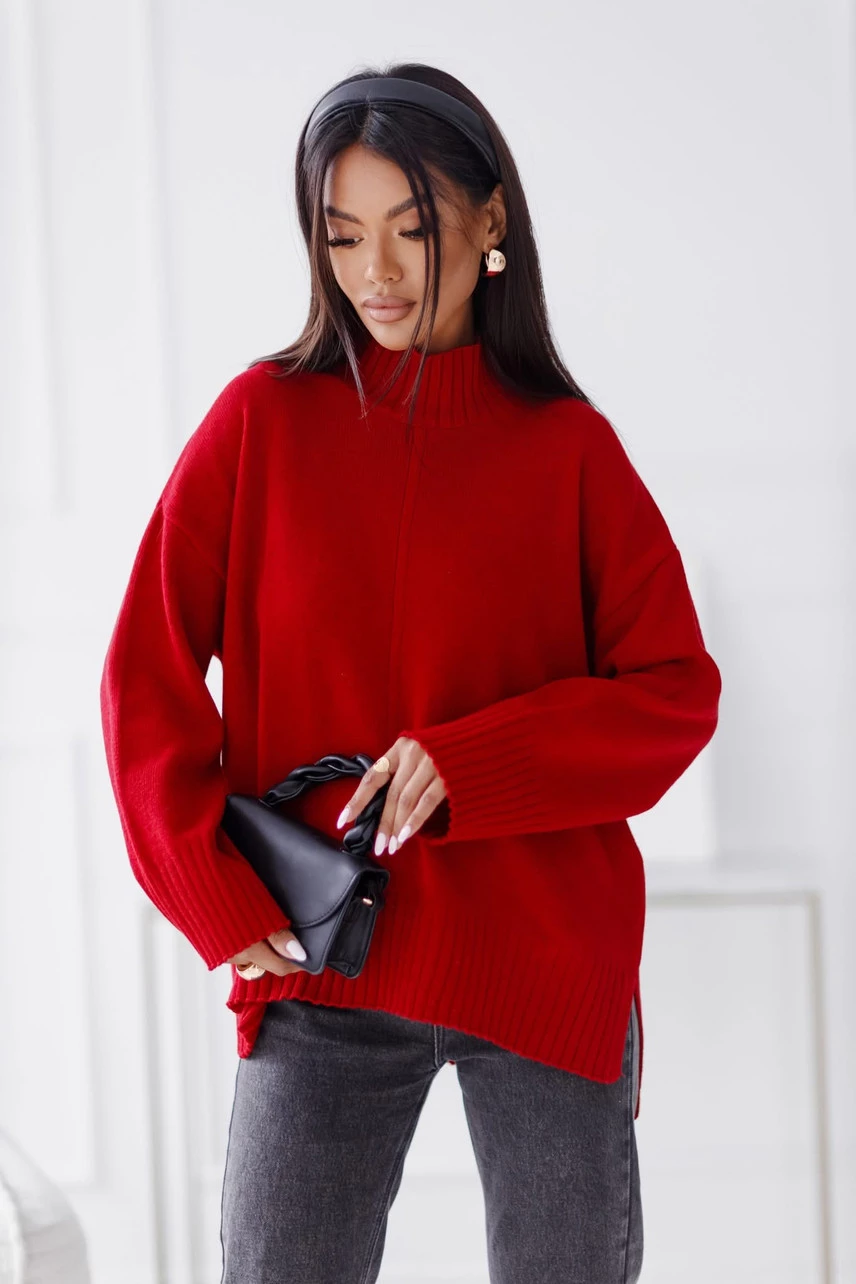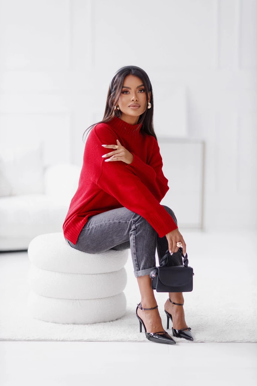 Sweter damski wełniany AURA, czerwony Madame Sue