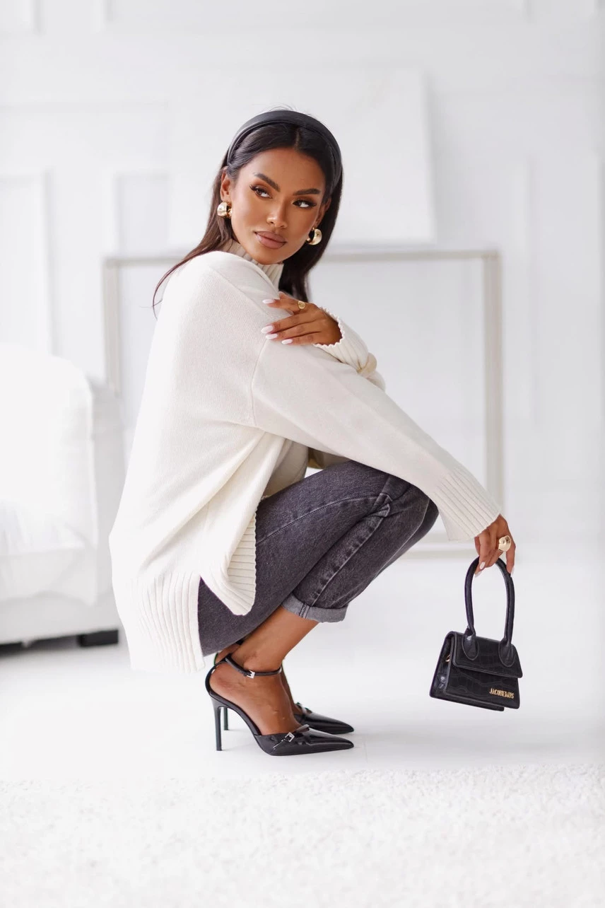 Wełniany sweter AURA, to model wykonany z wysokiej jakości przędzy, 80% wełny w składzie.