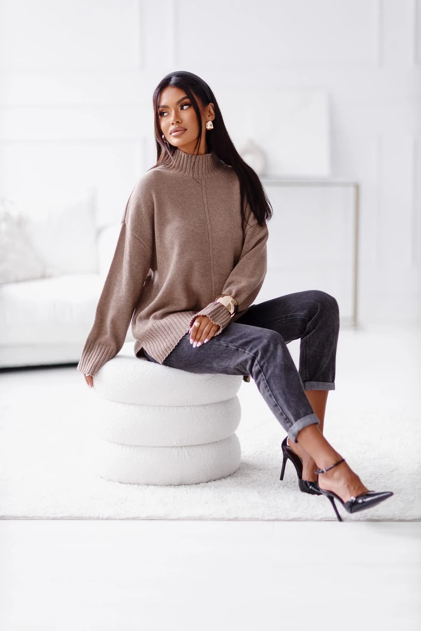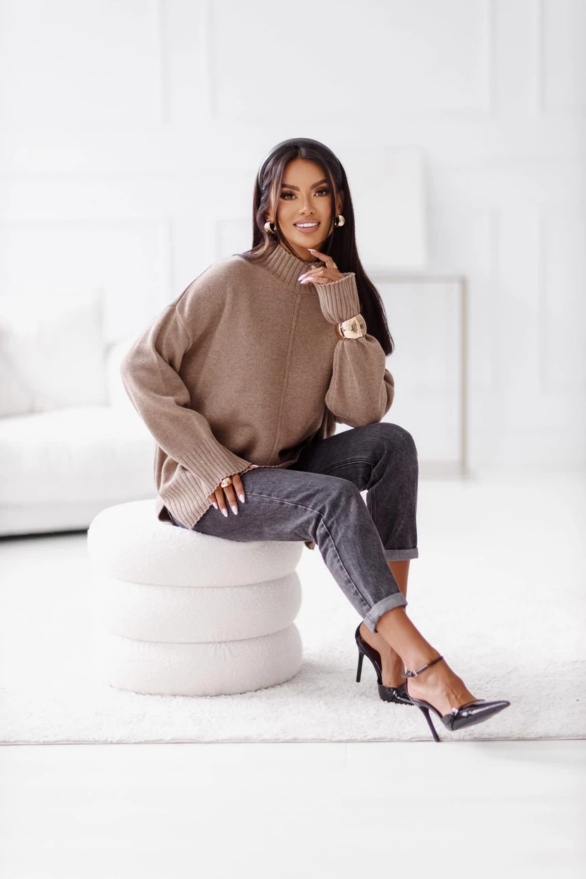 Sweter damski wełniany AURA, fango Madame Sue