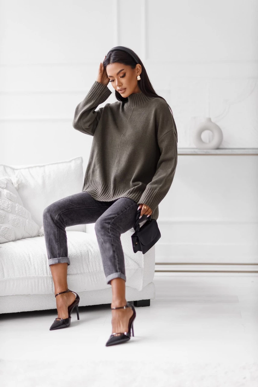 Sweter damski wełniany AURA, khaki Madame Sue