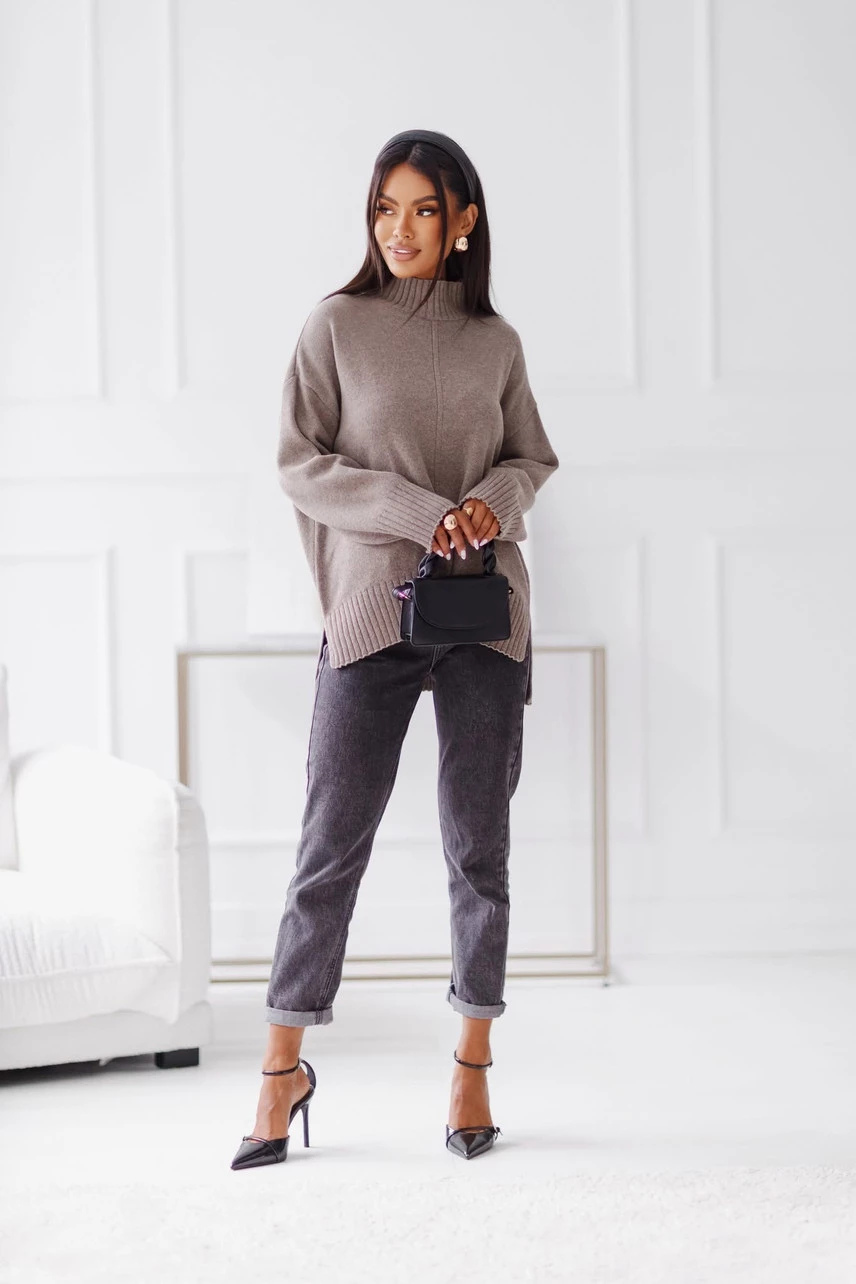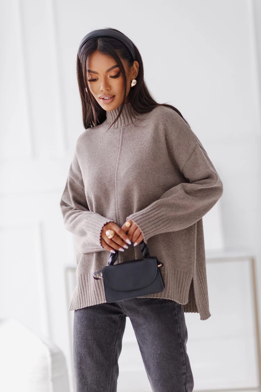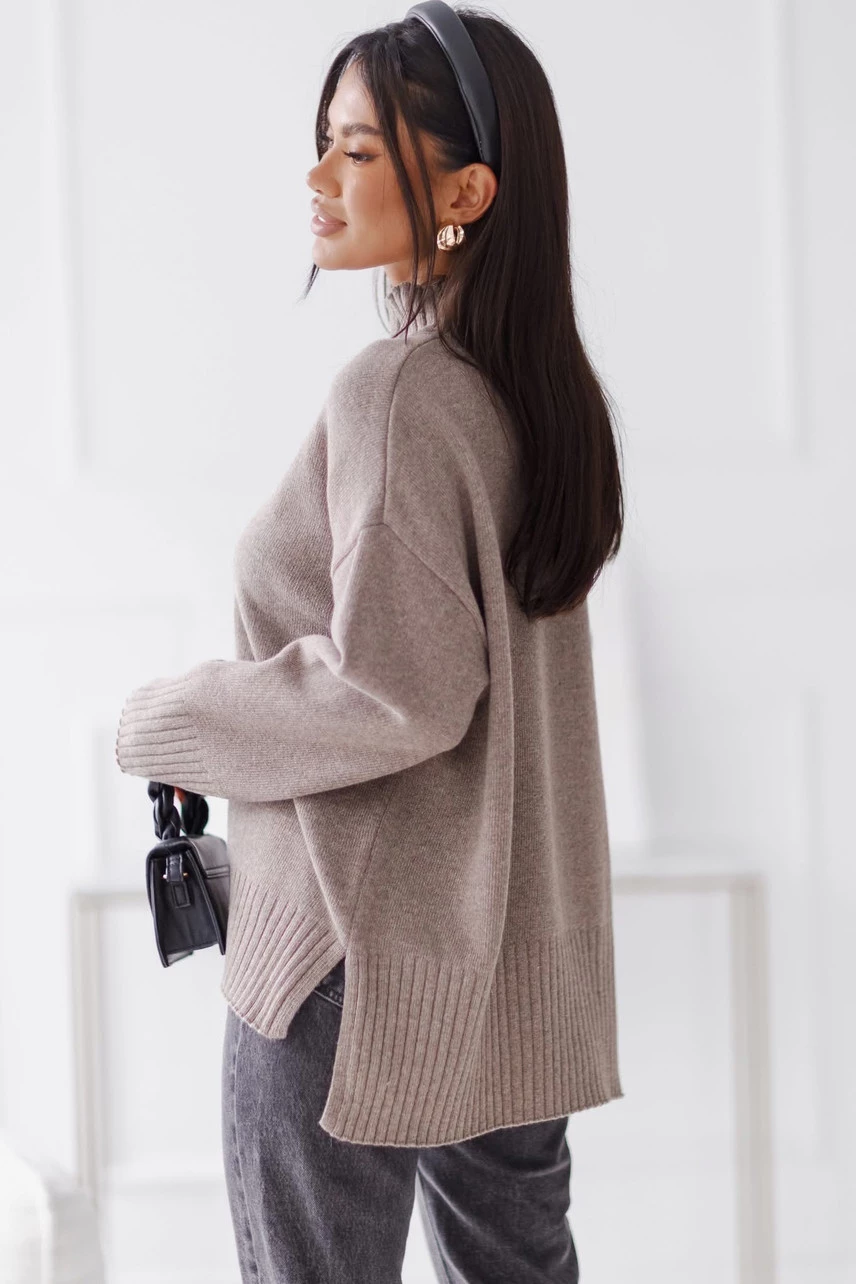 Sweter damski wełniany AURA, taupe Madame Sue