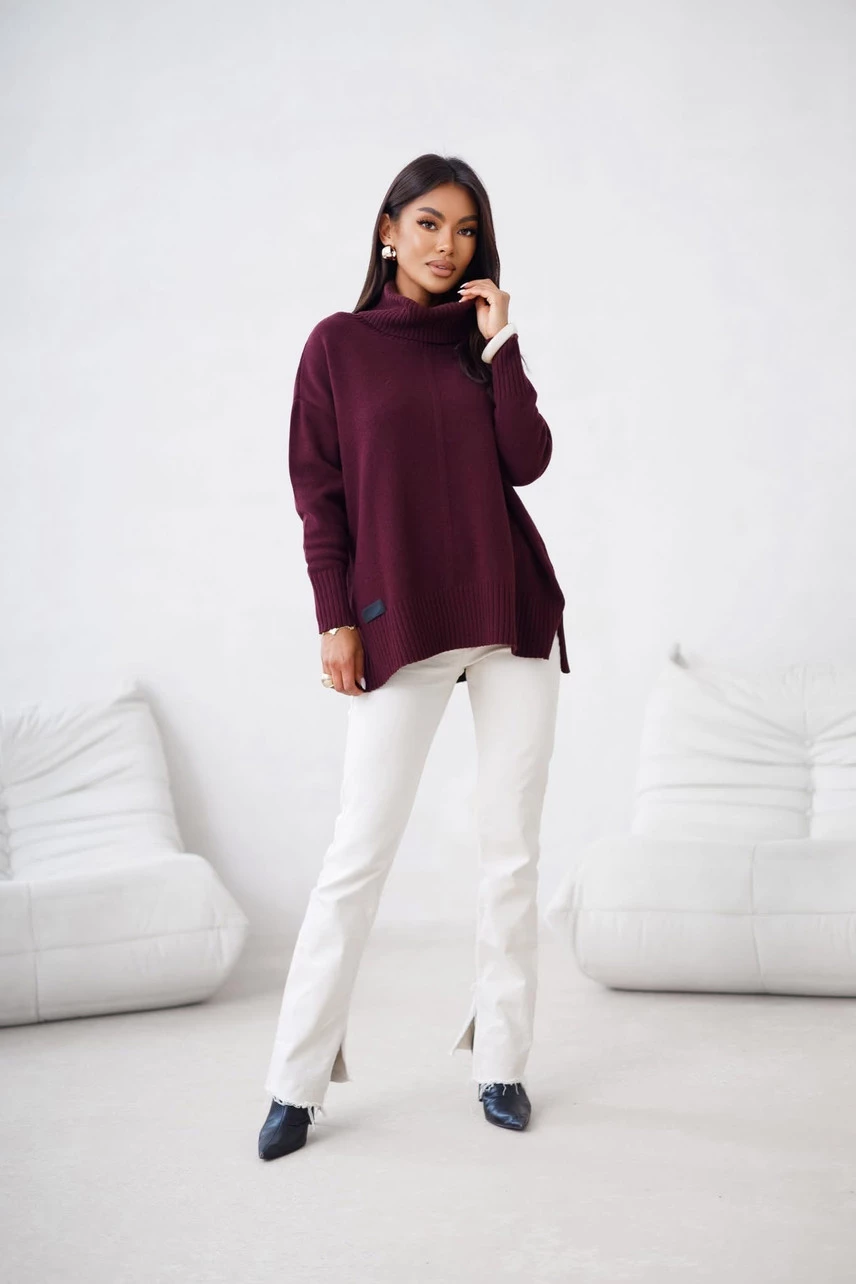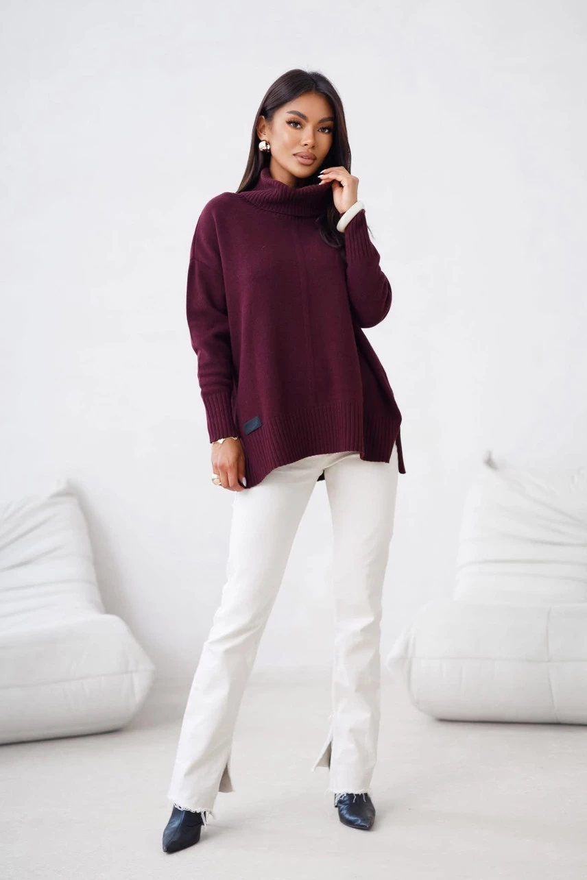 Sweter damski wełniany golf JOSE Madame Sue, bakłażan