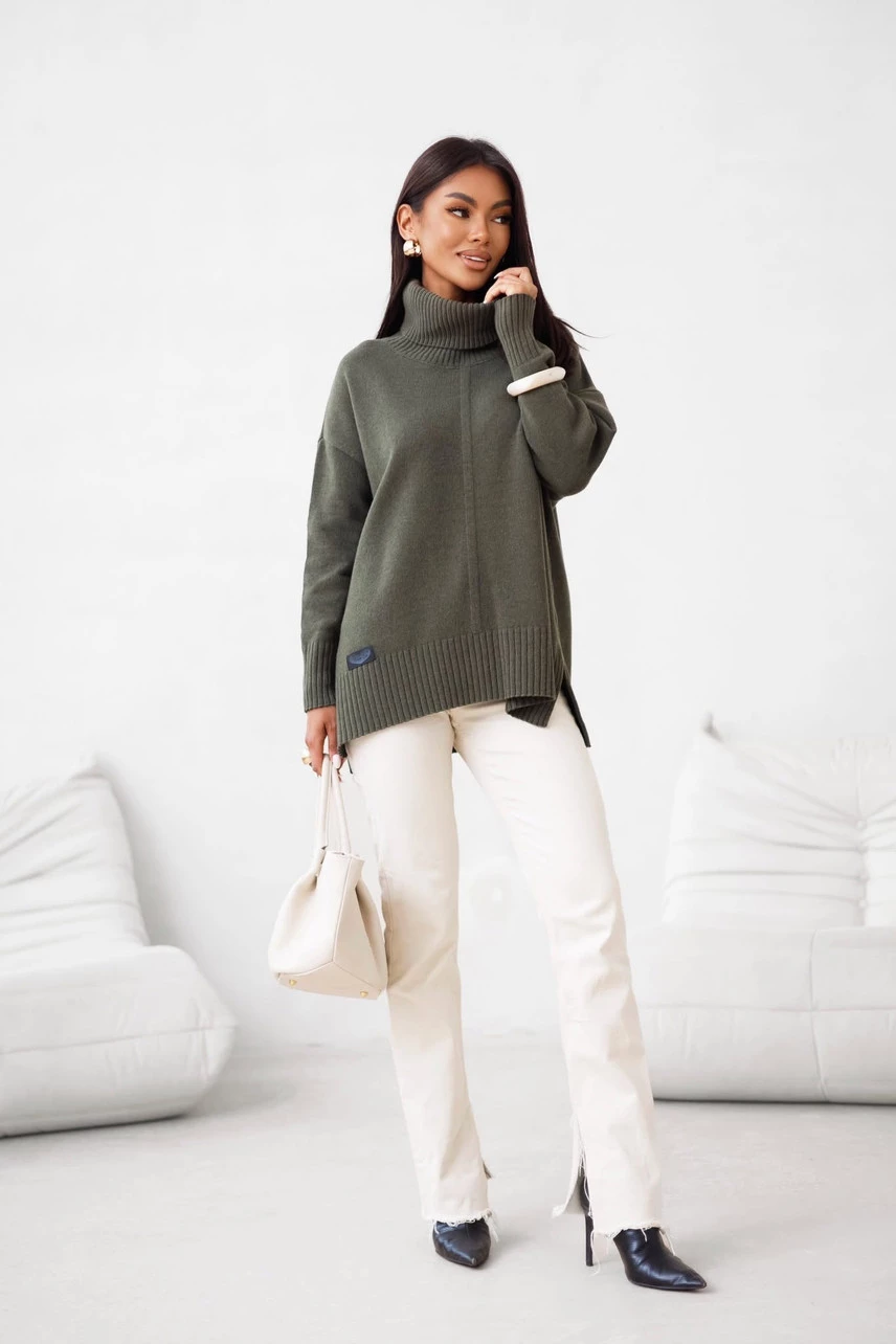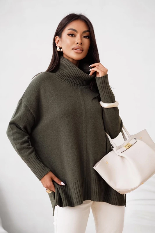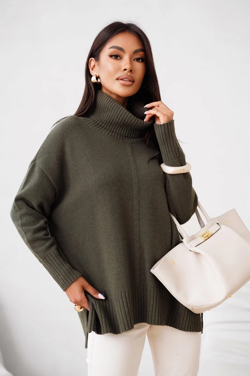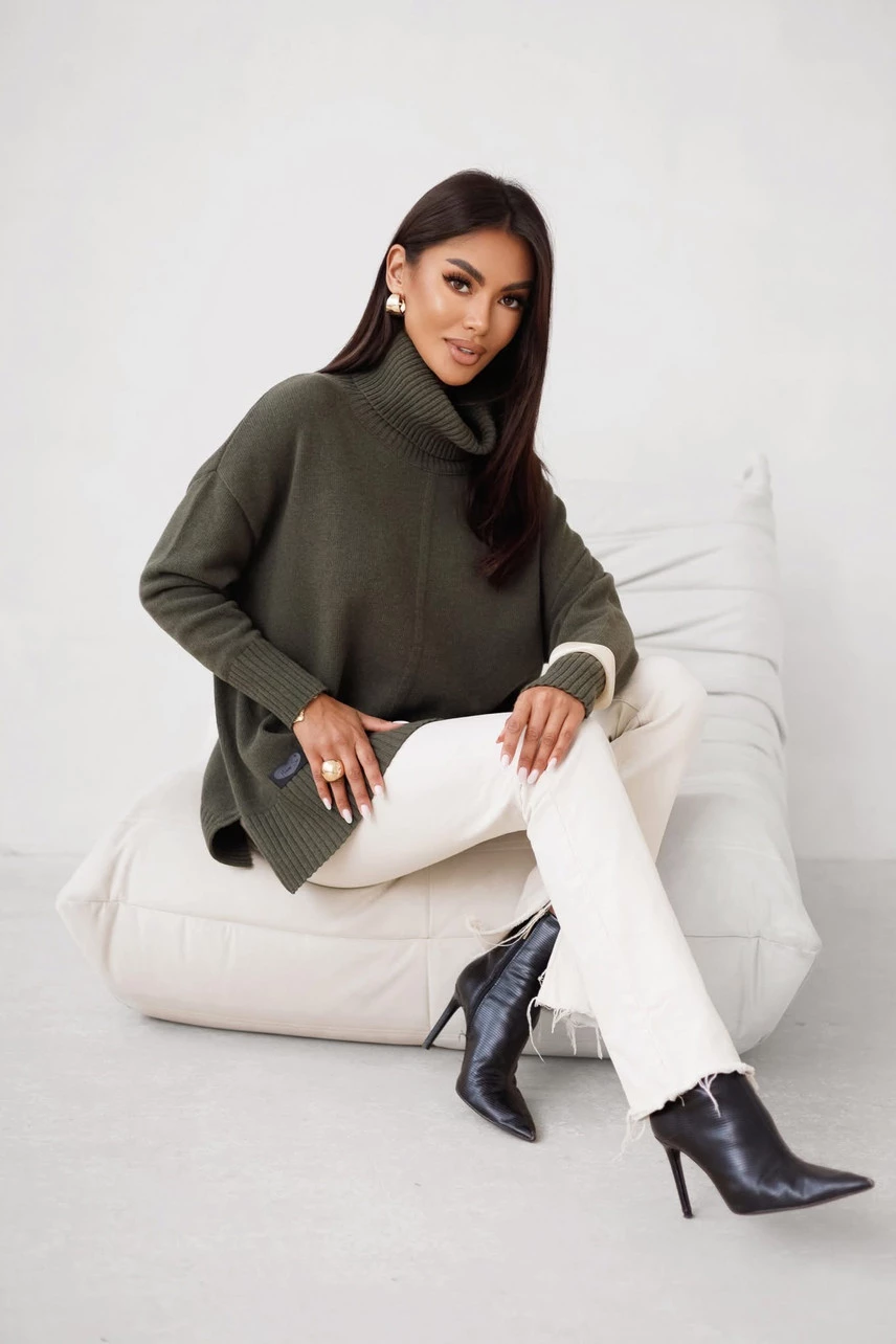 Sweter damski wełniany golf JOSE Madame Sue, khaki