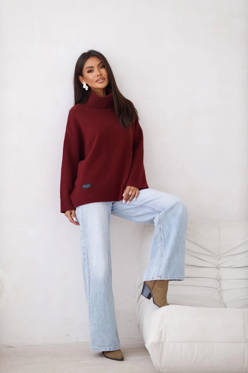 Sweter damski wełniany golf KELLY bordowy Madame Sue