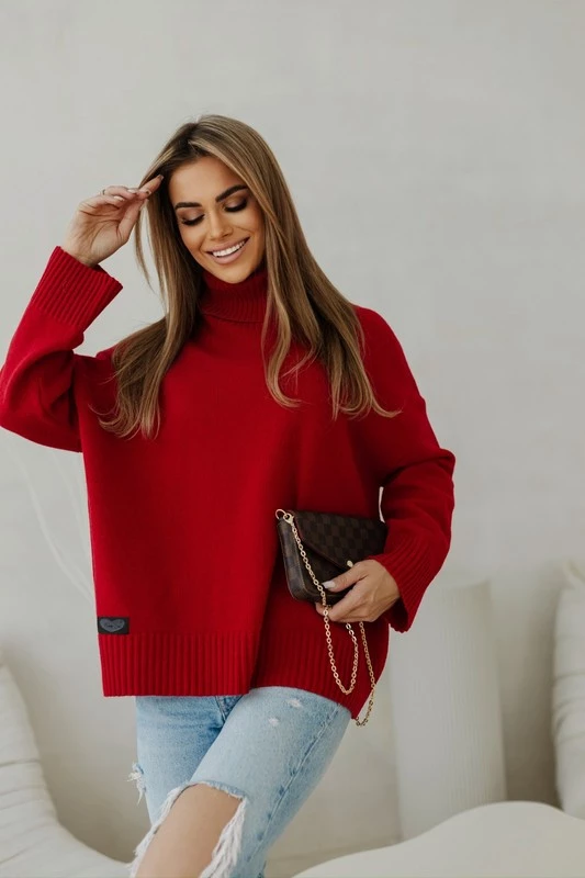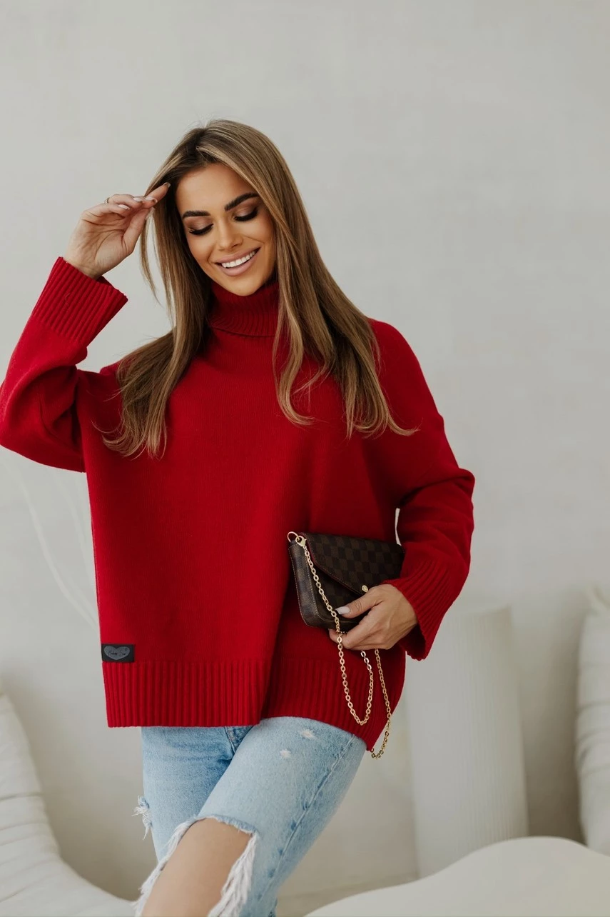 Zamówiłam sweter w kolorze czerwonym. Przepiekany kolor, soczysta czerwień. Natomiast sam sweter jest luźny, wygodny, trochę gryzący, ale mnie to nie przeszkadza. Jestem bardzo zadowolona z zakupu. Warto mieć w szafie chociaż jeden taki egzemplarz, pasuje do wielu rzeczy i zmieniając dodatki, pasuje na różne okoliczności. Polecam.