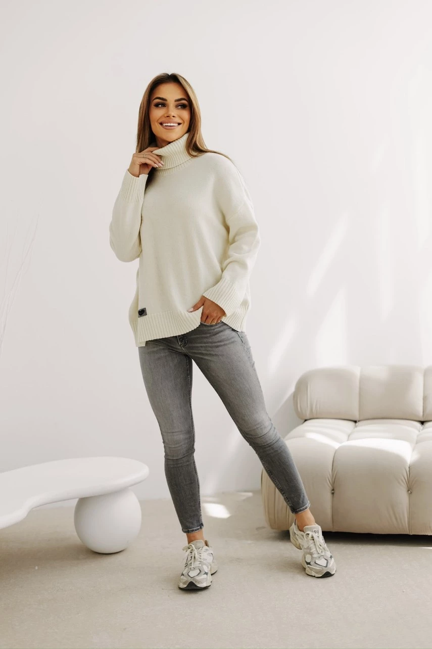 Sweter damski wełniany golf KELLY ecru Madame Sue