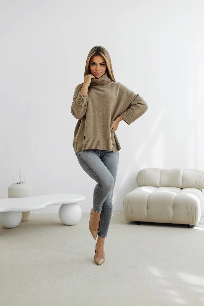 Sweter damski wełniany golf KELLY fango Madame Sue