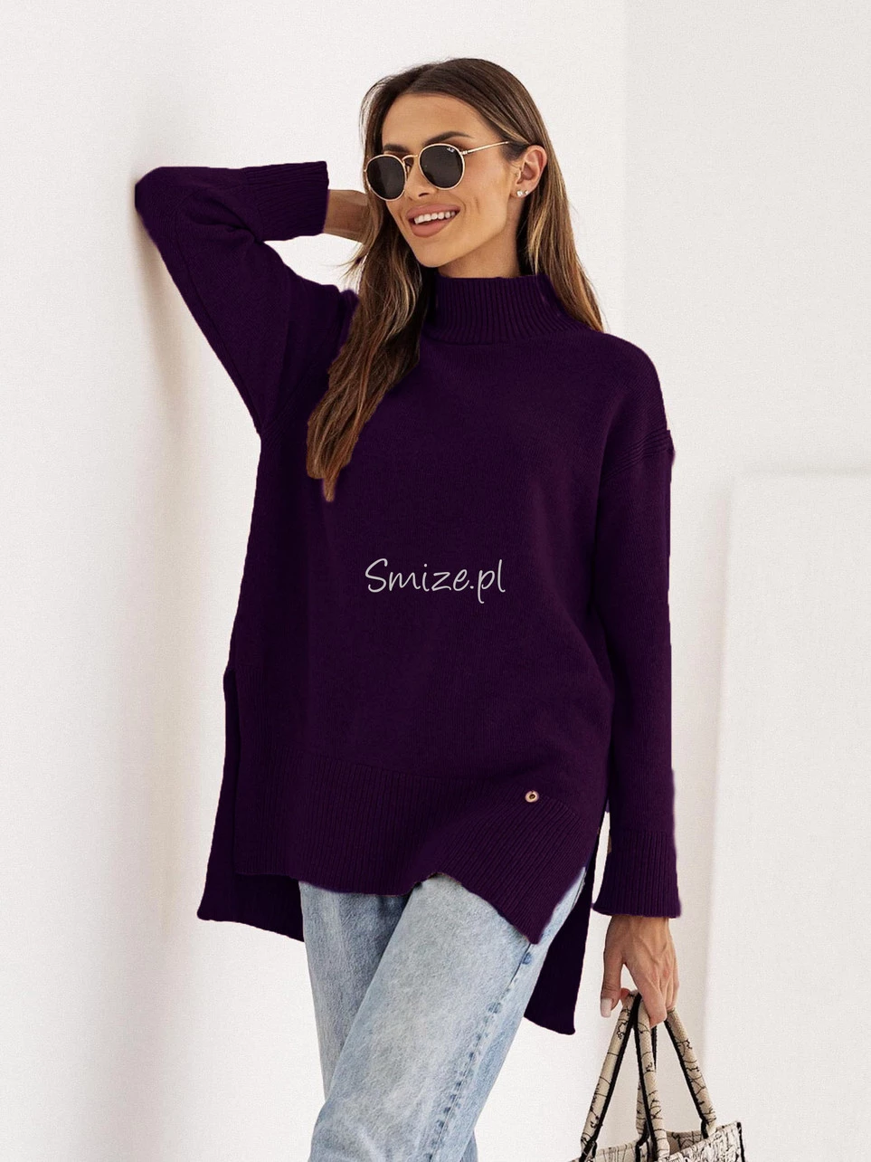 Dekolt wykończony półgolfem, bardzo modny i stylowy, klasyczny fason.