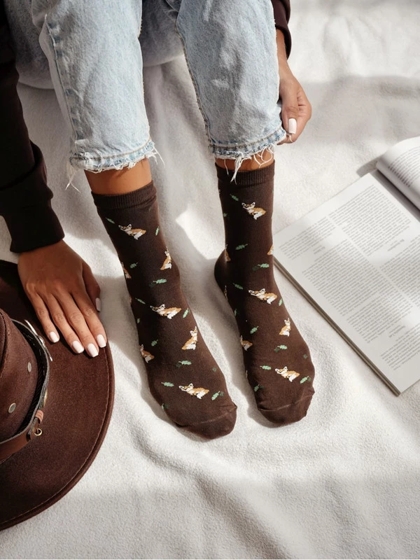 Damskie, bawełniane skarpety w modny, jesienny wzór.