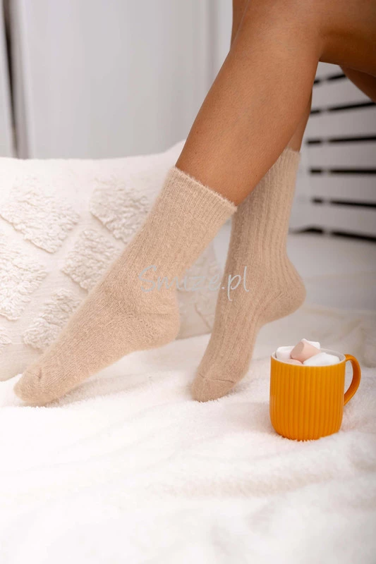 Opinie o Skarpetki z angory, prążkowane, beżowe