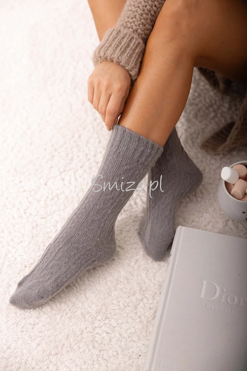 Skarpetki z angory, wzór warkocz, grafitowe