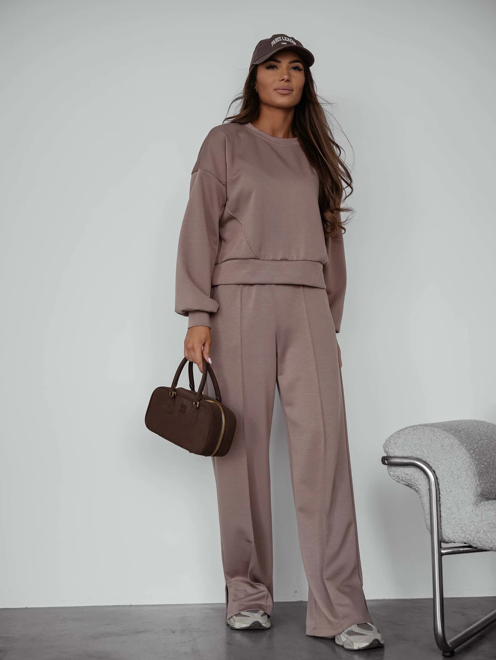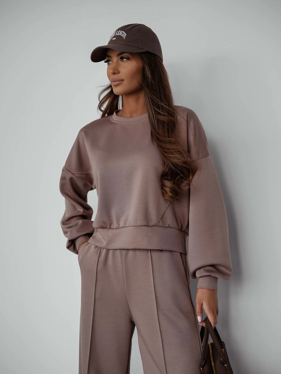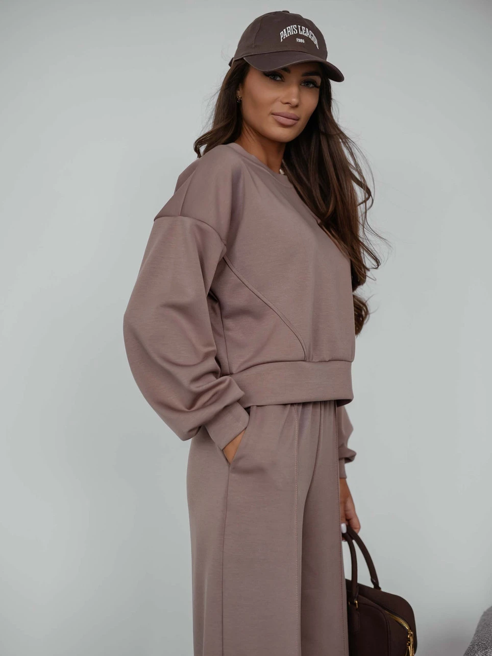 Komplet dresowy bez kaptura PASTEL, "Masełko" z wiskozy cappucino
