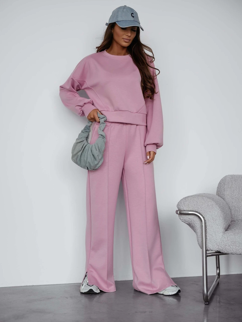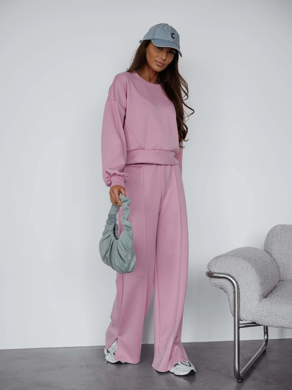 Komplet dresowy bez kaptura PASTEL, "Masełko" z wiskozy pudrowy