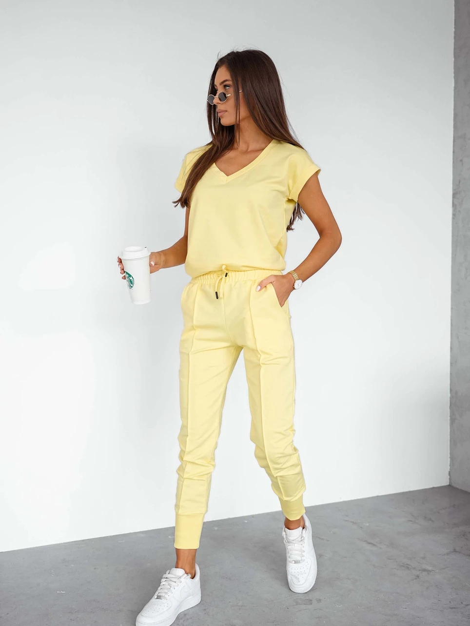 Wygodny komplet dresowy składający się ze spodni i T-shirta.