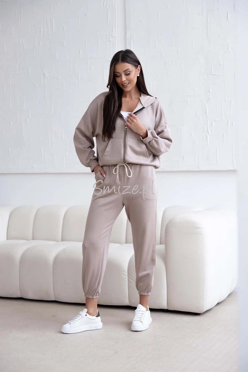 Komplet dresowy z wiskozy, masełkowy z rozpinaną bluzą, cappucino
