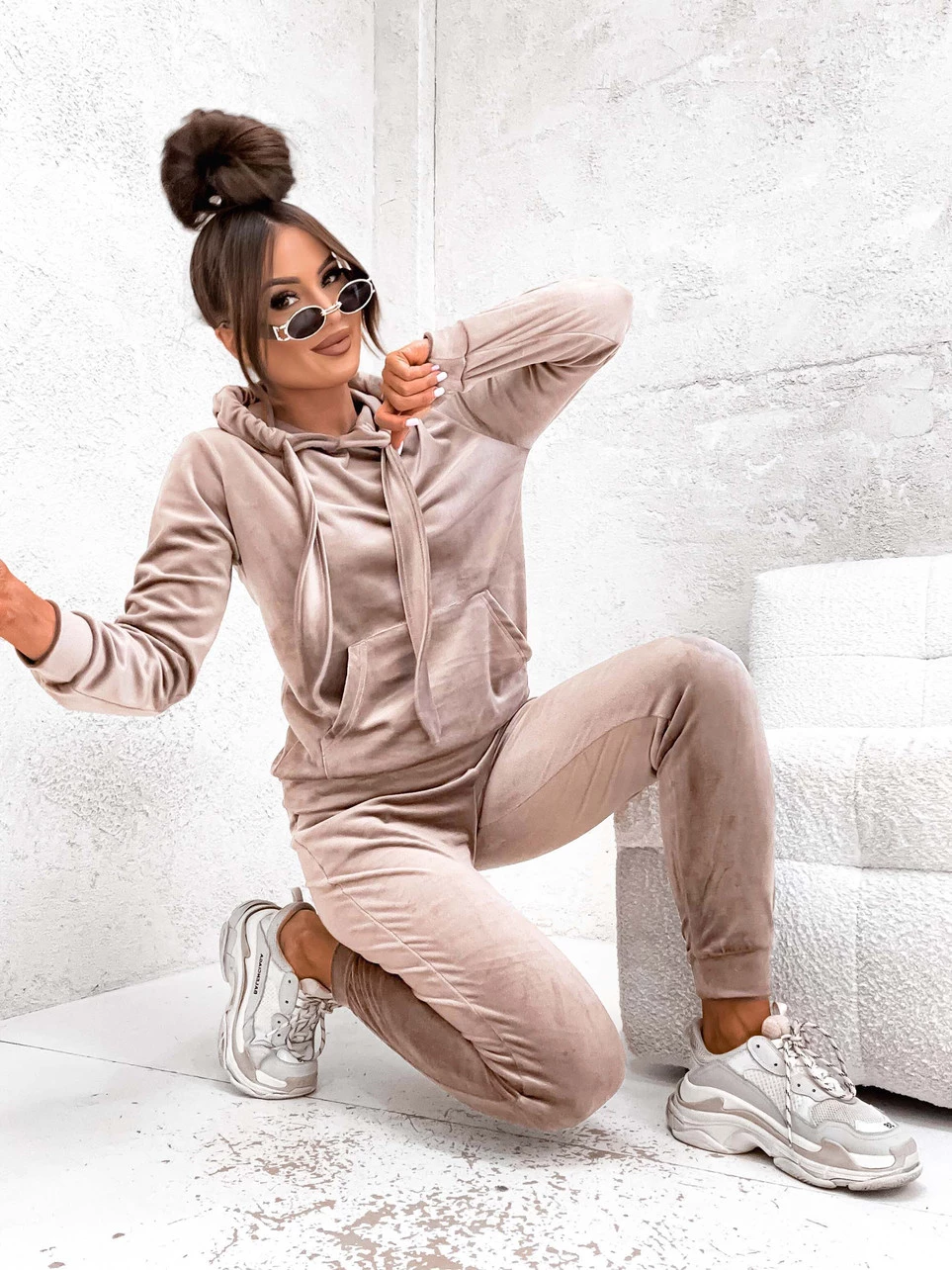 Opinie o Welurowy komplet dresowy z kapturem YOGA
