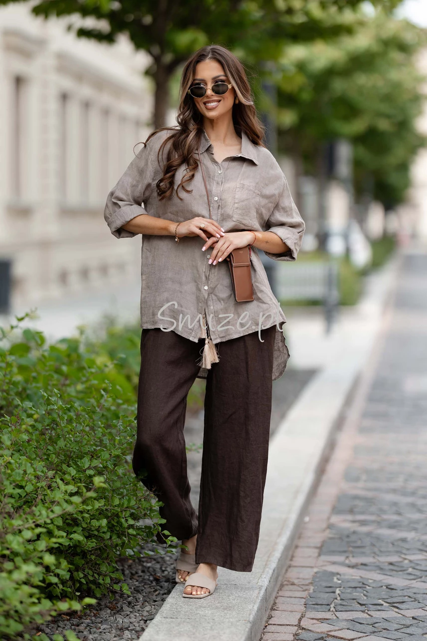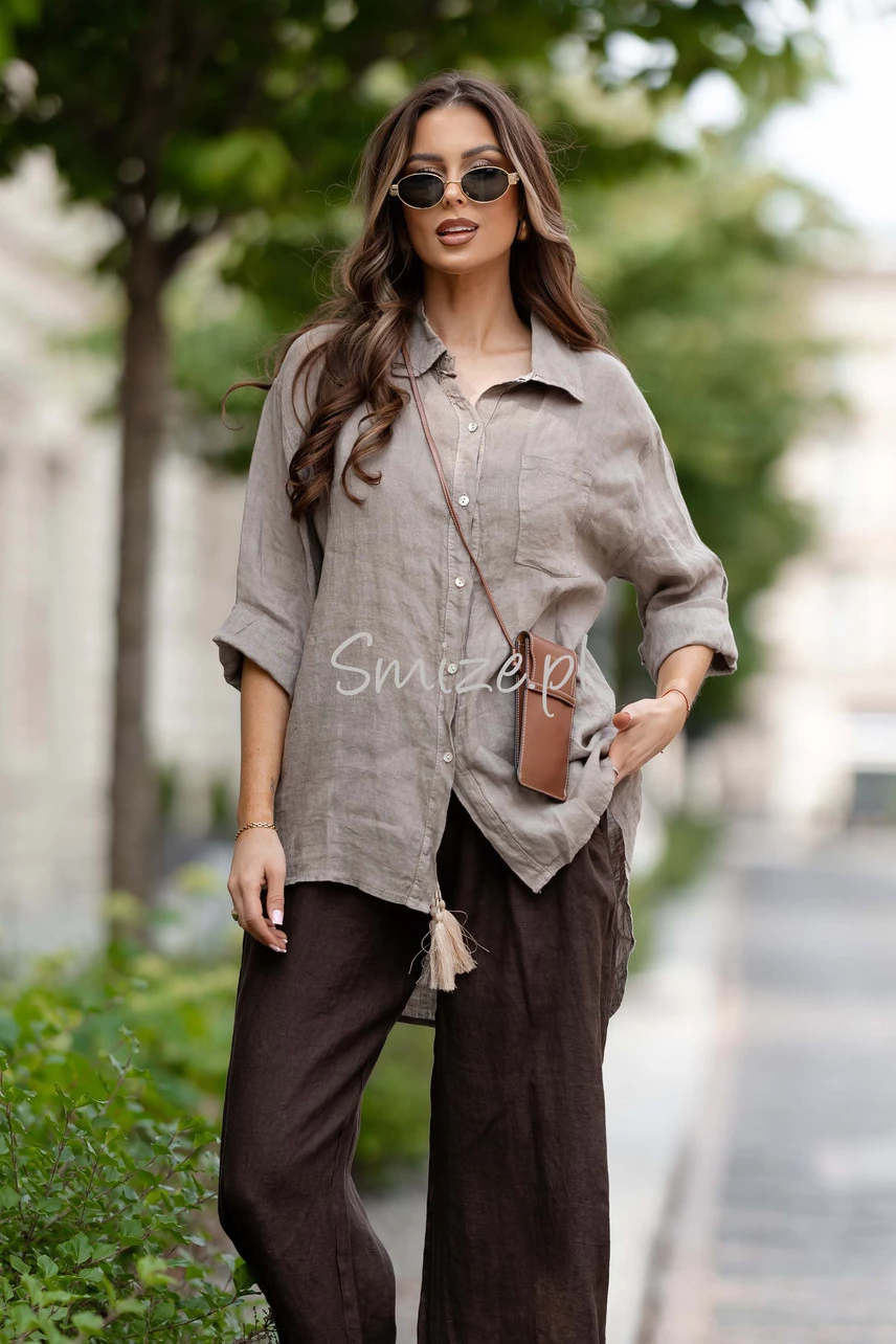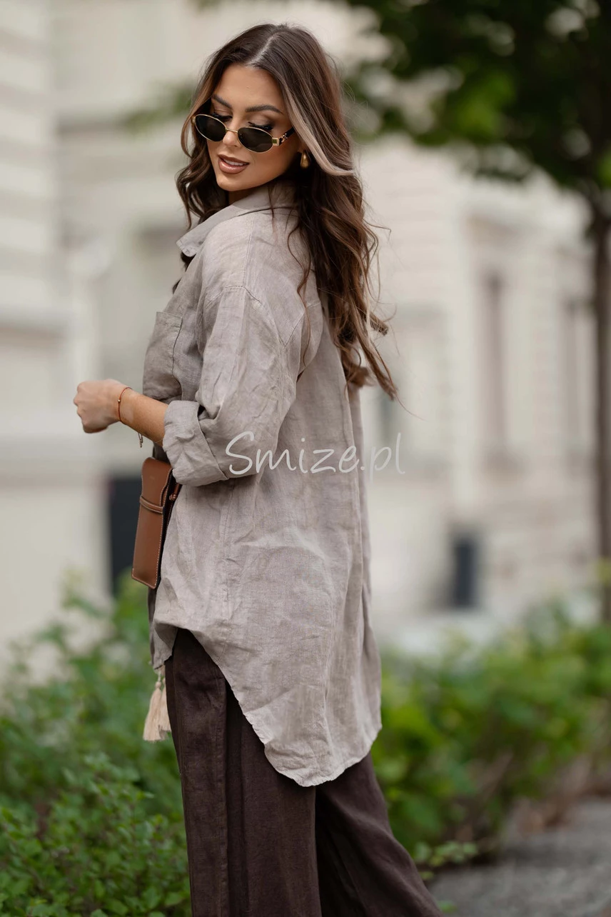 Dłuższa lniana koszula z jedną kieszonką