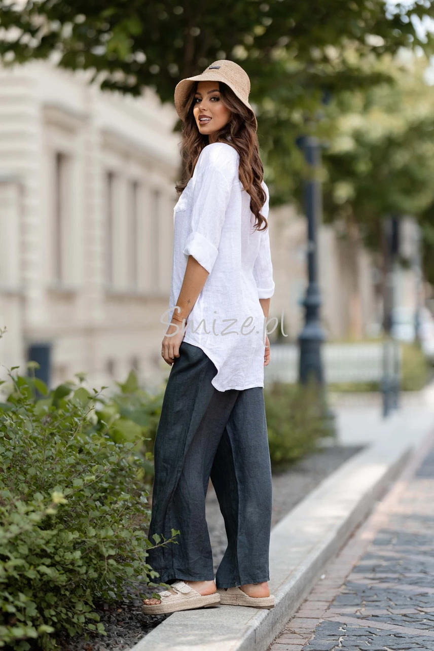 Dłuższa lniana koszula z jedną kieszonką