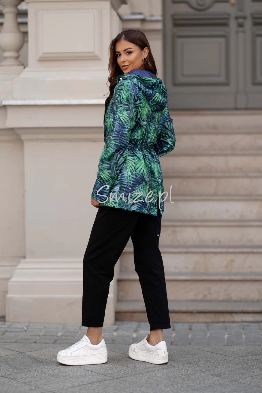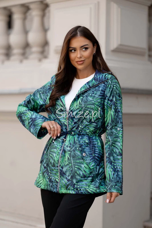 Kurtka przeciwdeszczowa – damska lekka parka z tropikalnym wzorem