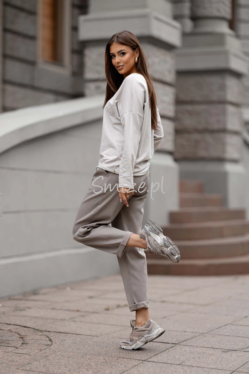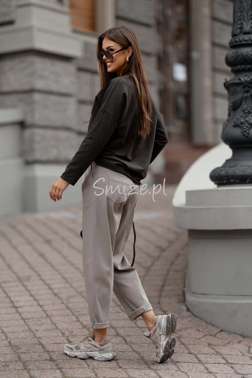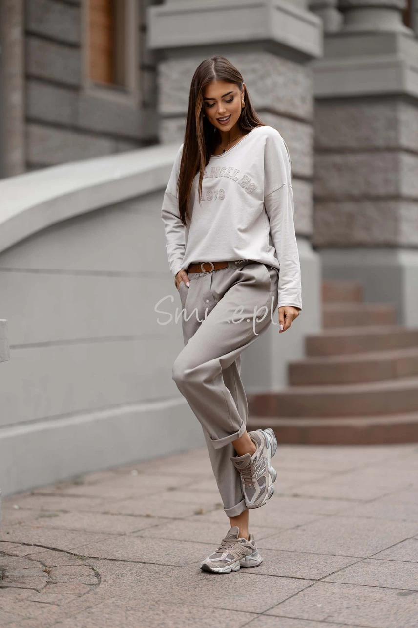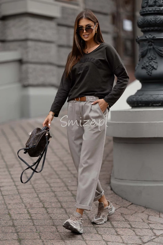 Spodnie pięknie prezentują się z kurtkami, sweterkami typu baby alpaka i koszulami, dostępnymi w naszej ofercie.