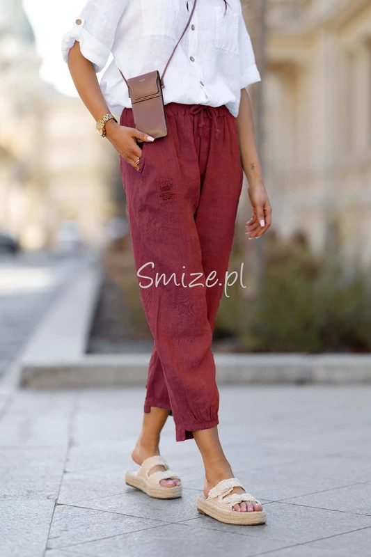 • Codzienny look:Połącz spodnie lniane z białym t-shirtem i sandałami na płaskiej podeszwie, tworząc wygodny zestaw na spacer czy zakupy.