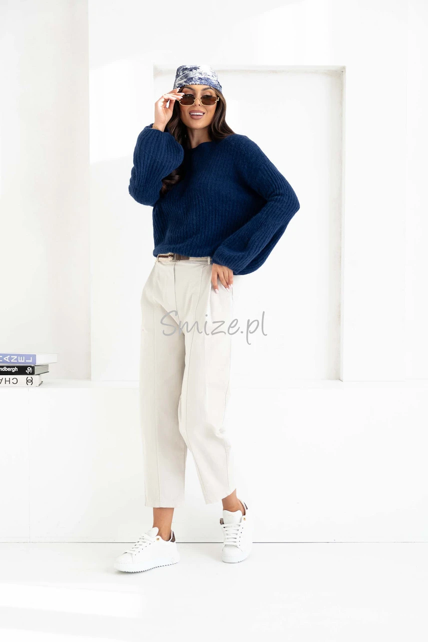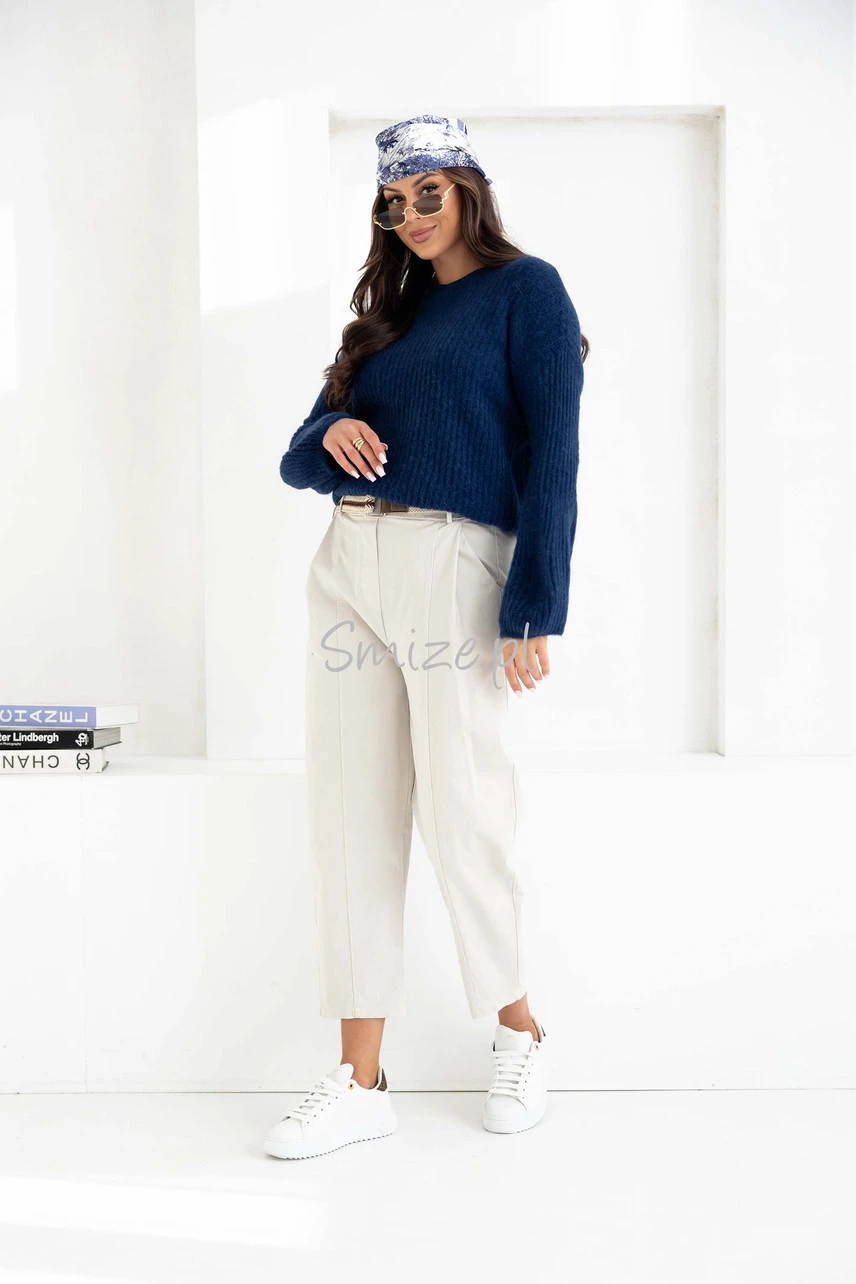 Spodnie pięknie prezentują się z kurtką, sweterkiem typu baby alpaka lub koszulą, dostępnymi w naszej ofercie.