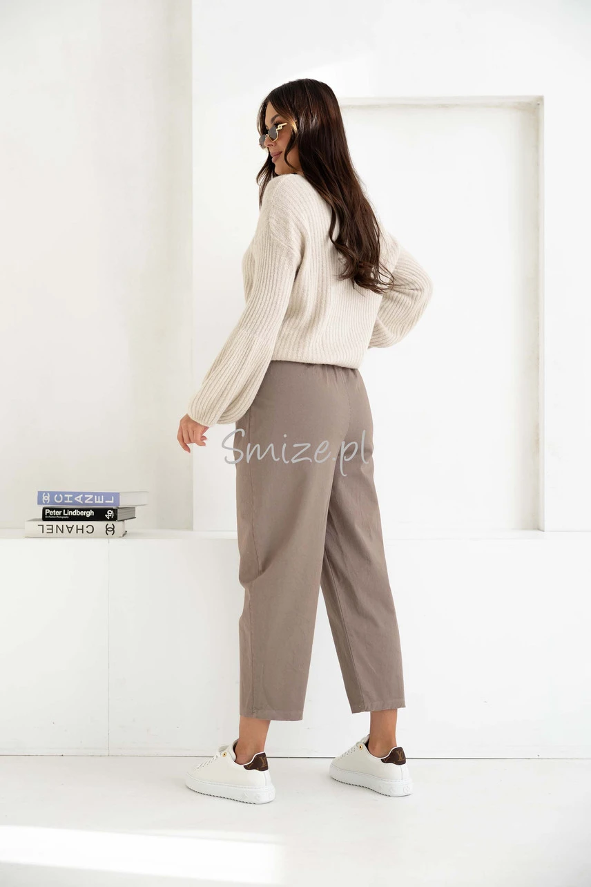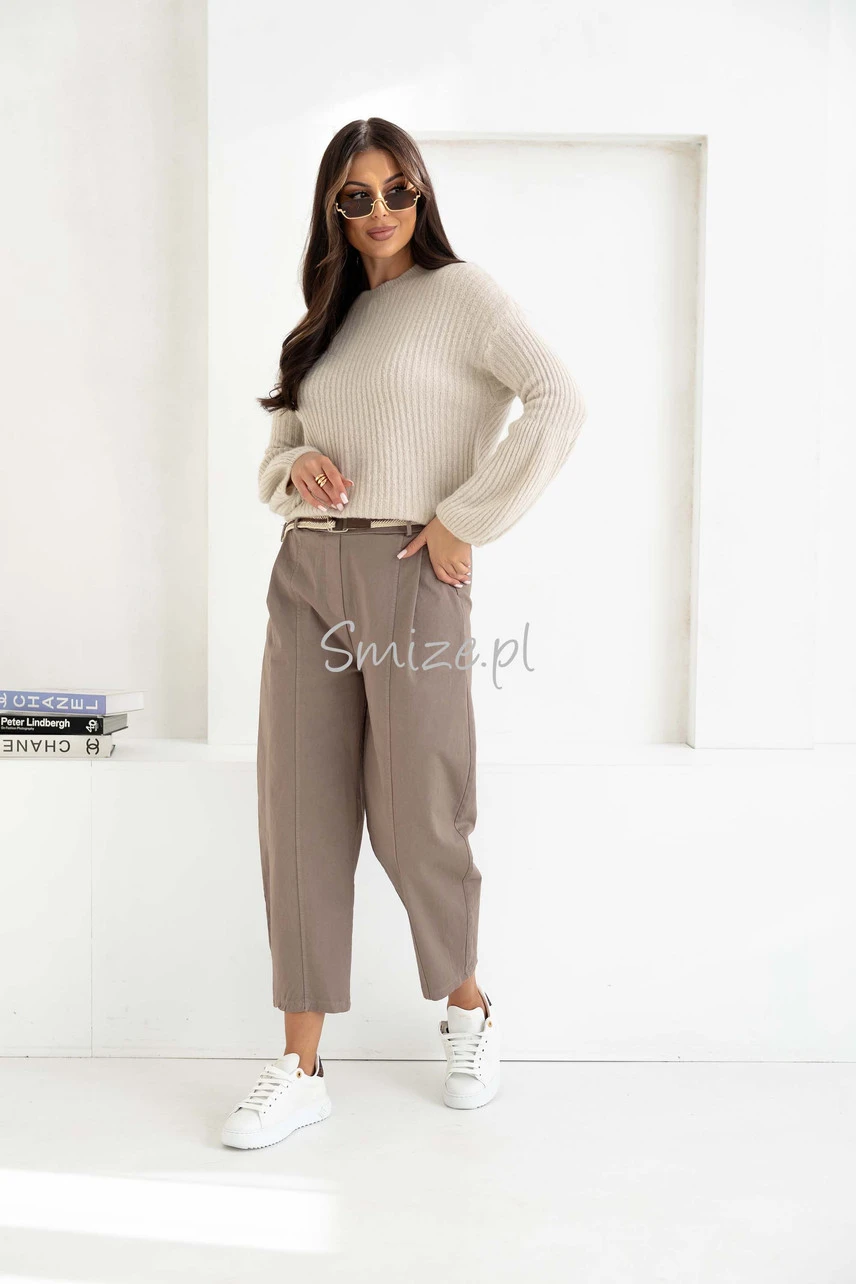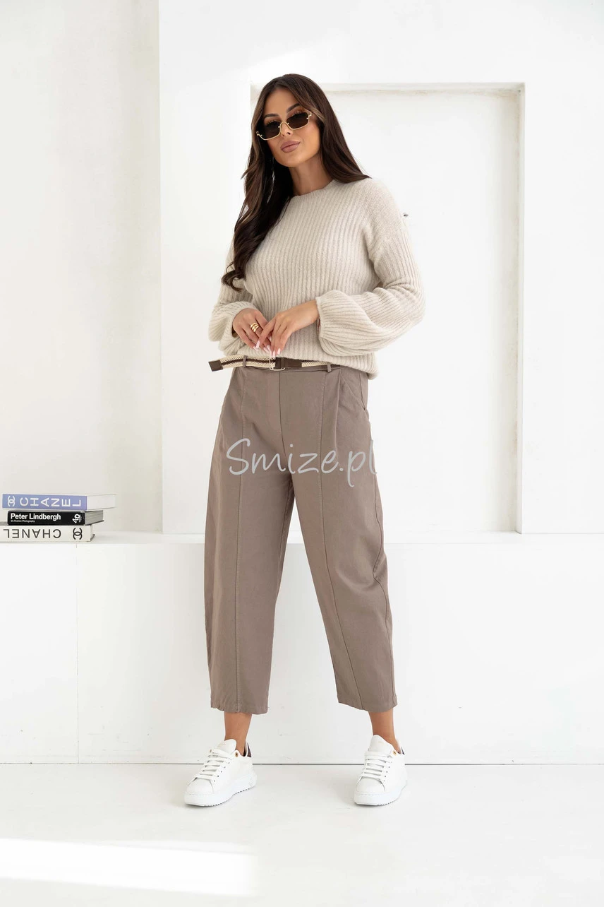 Spodnie damskie o kroju Balloon z wysokim stanem, mokka