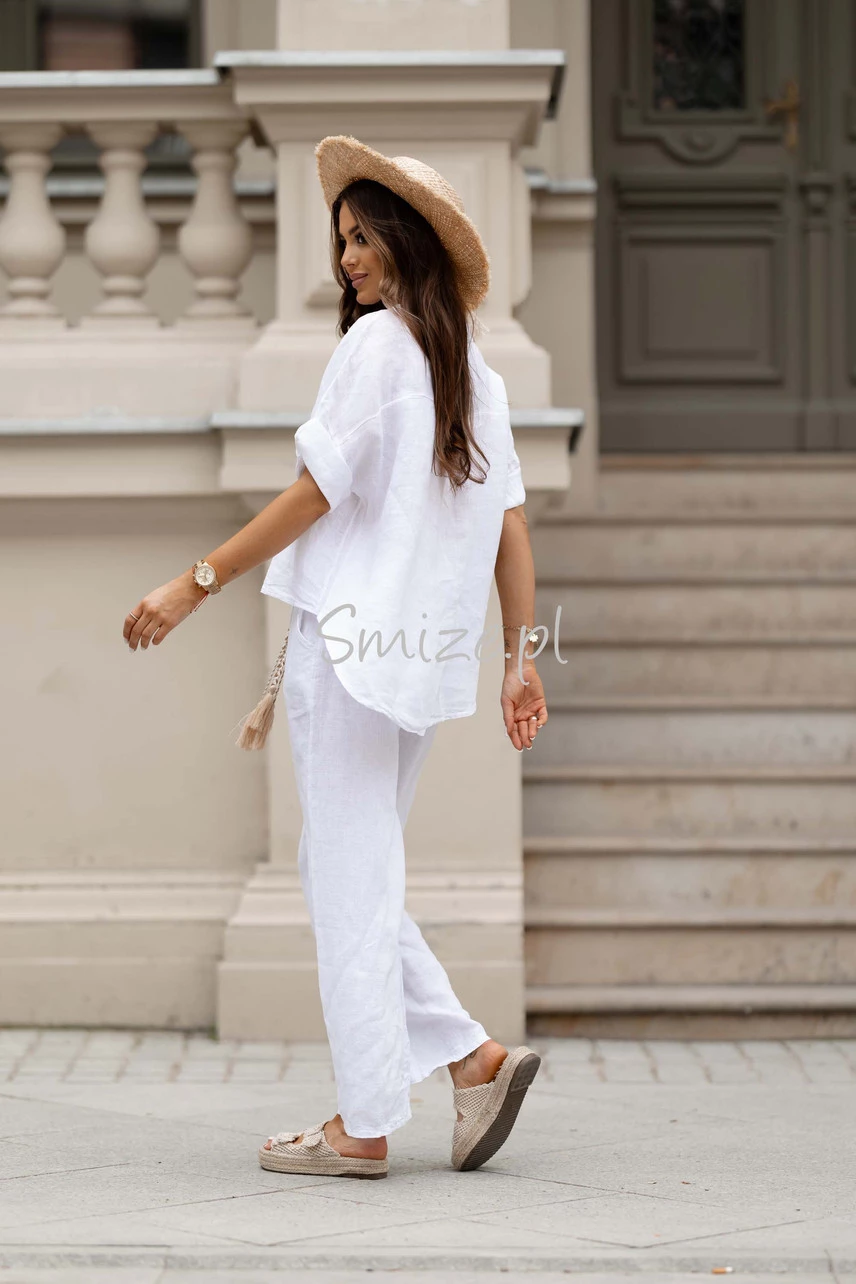 Spodnie pasują do wiosenno - letnich stylizacji w zestawieniu z lnianymi koszulami i bluzkami dostępnymi w naszej ofercie.