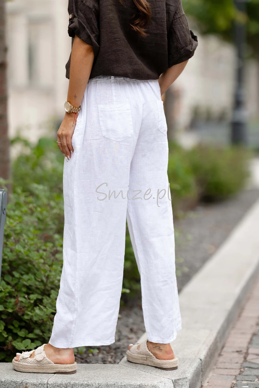 Szerokie Spodnie lniane z troczkami
