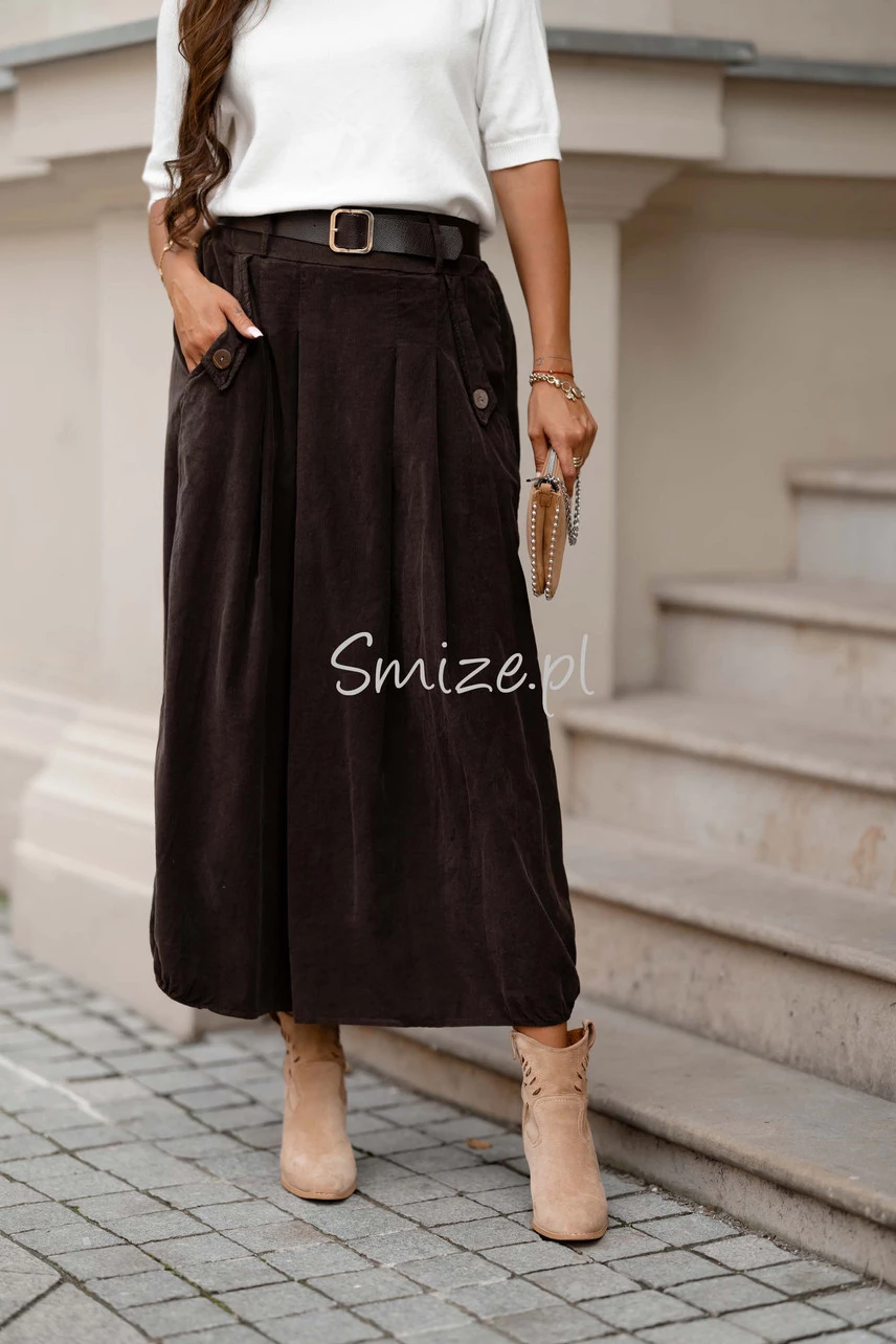 Opinie o Spódnica sztruksowa z paskiem czekoladowa