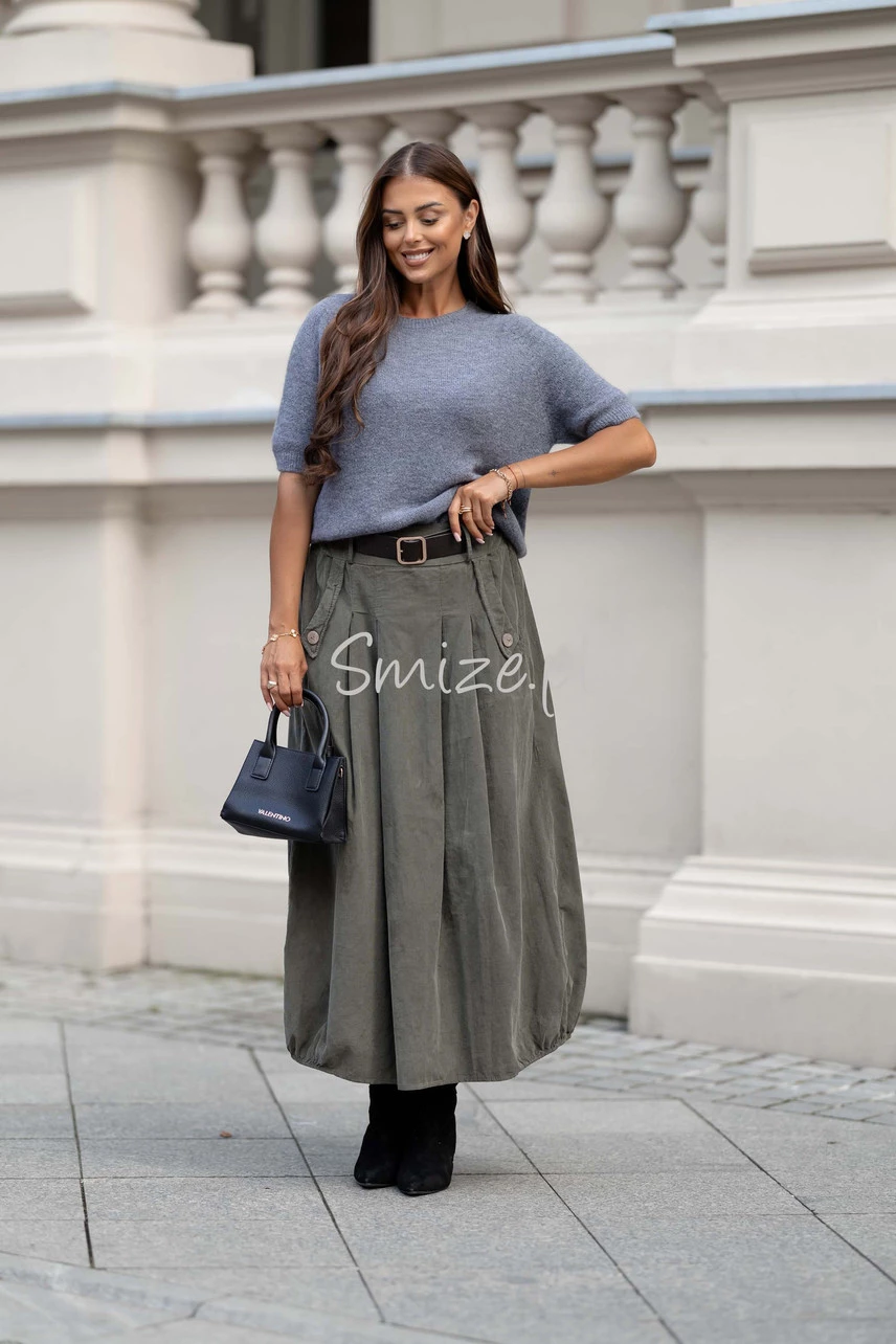 Opinie o Spódnica sztruksowa z paskiem khaki