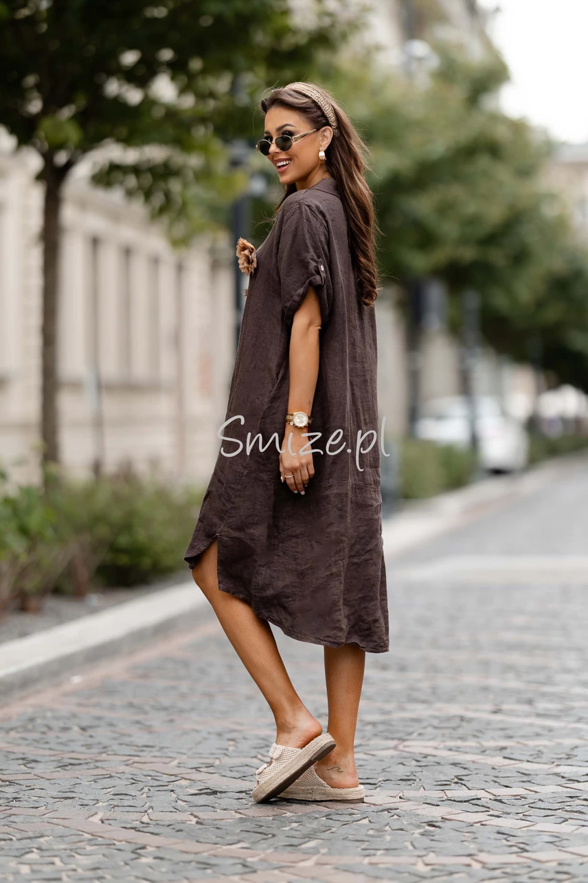 Sukienka lniana z odpinanym kwiatkiem – elegancja i komfort na lato