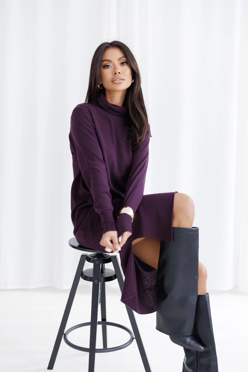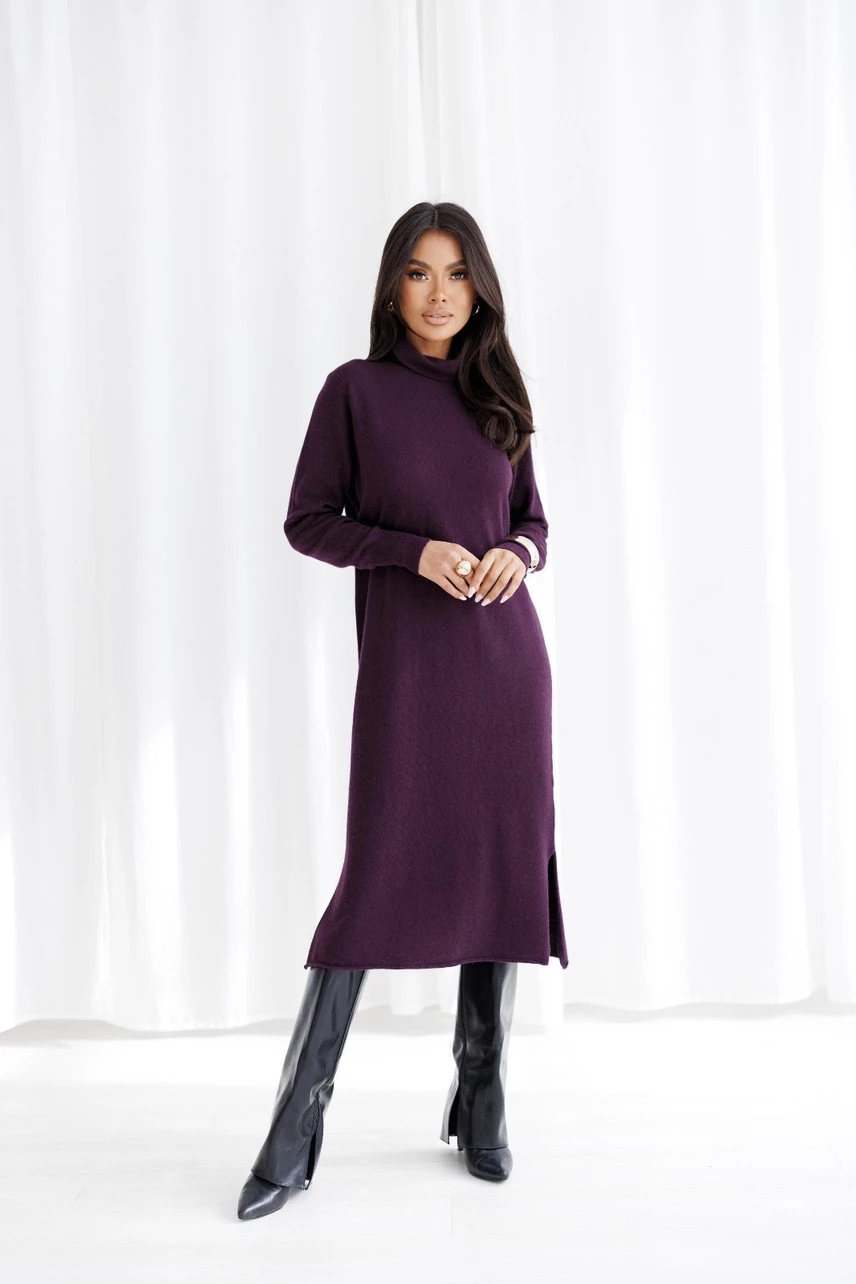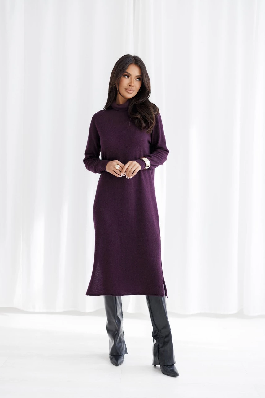 Wełniana Sukienka z golfem, z dodatkiem cashmiru ALVARO Madame Sue, bakłażanowa