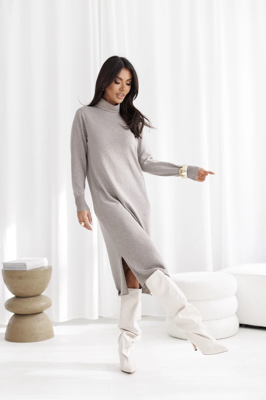 Sukienka z golfem z dodatkiem kaszmiru, to produkt wykonany ze świetnej jakości przędzy premium.