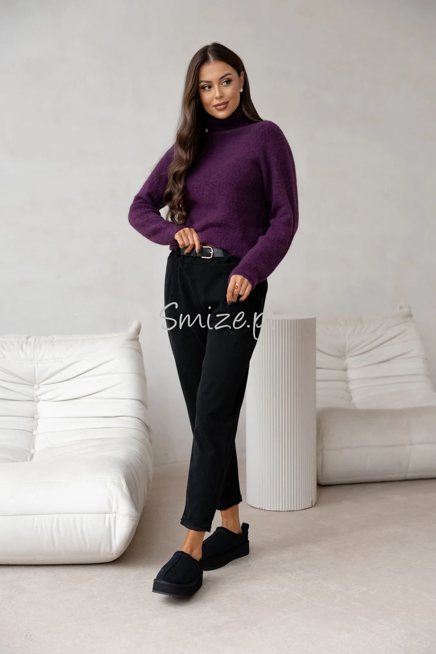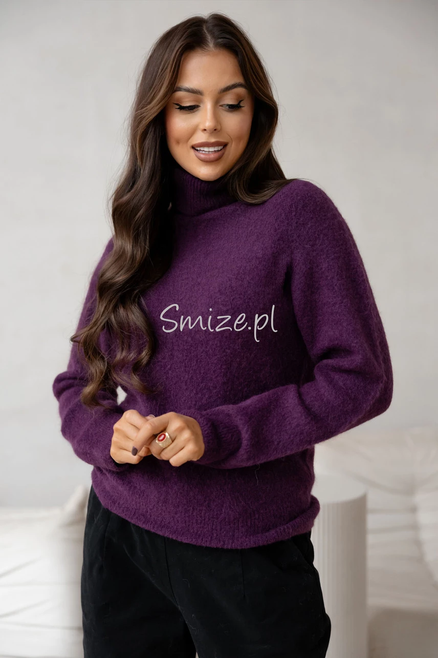 Sweter z golfem baby alpaka, bakłażan