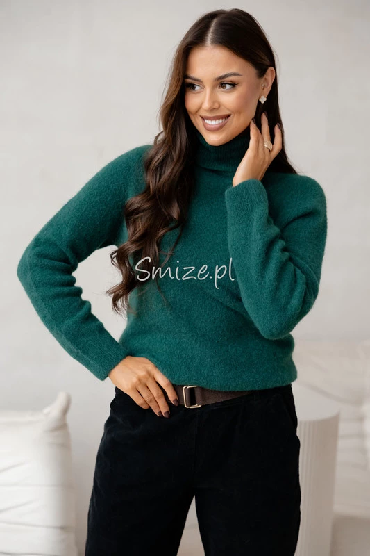 Sweter z golfem baby alpaka, butelkowa zieleń