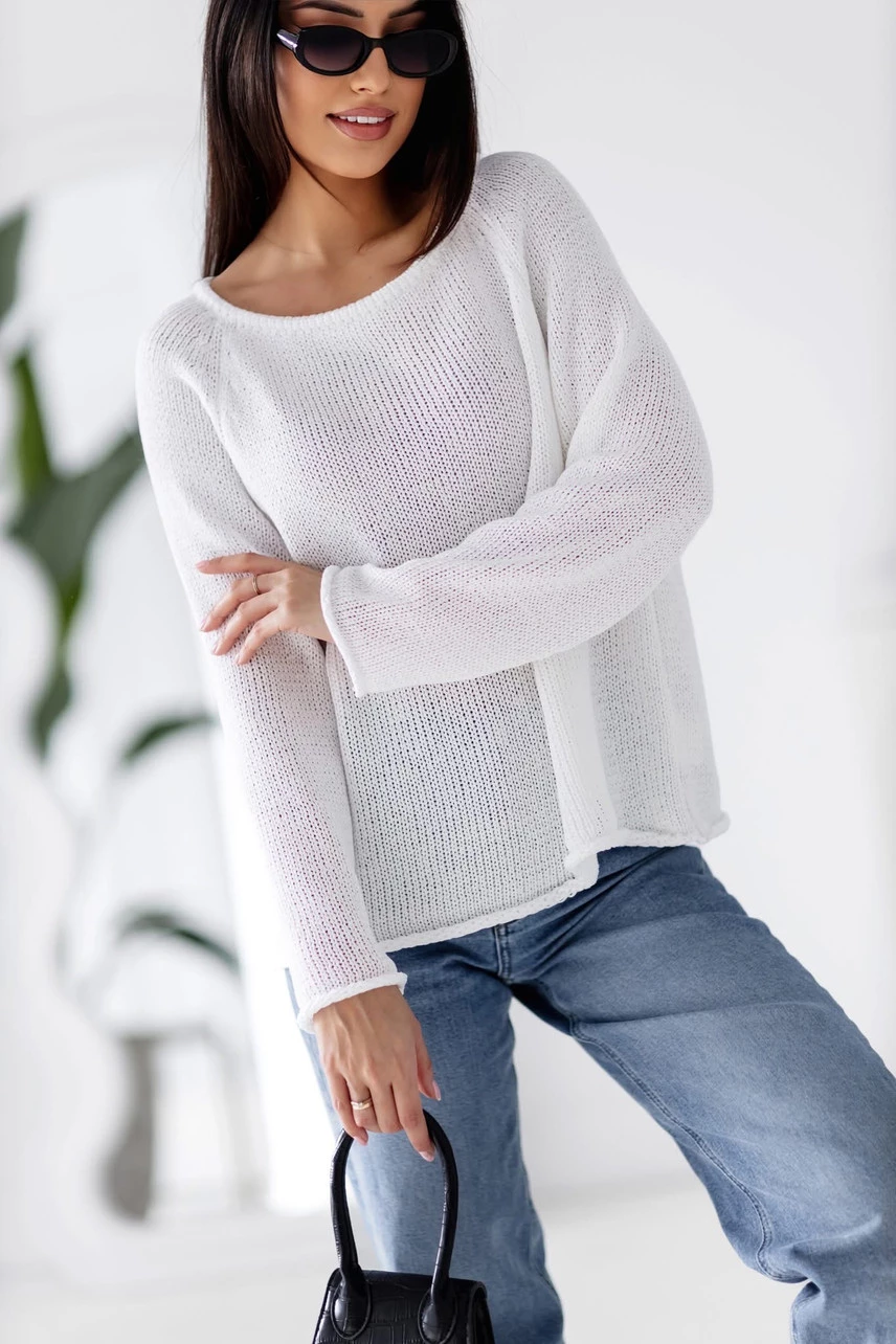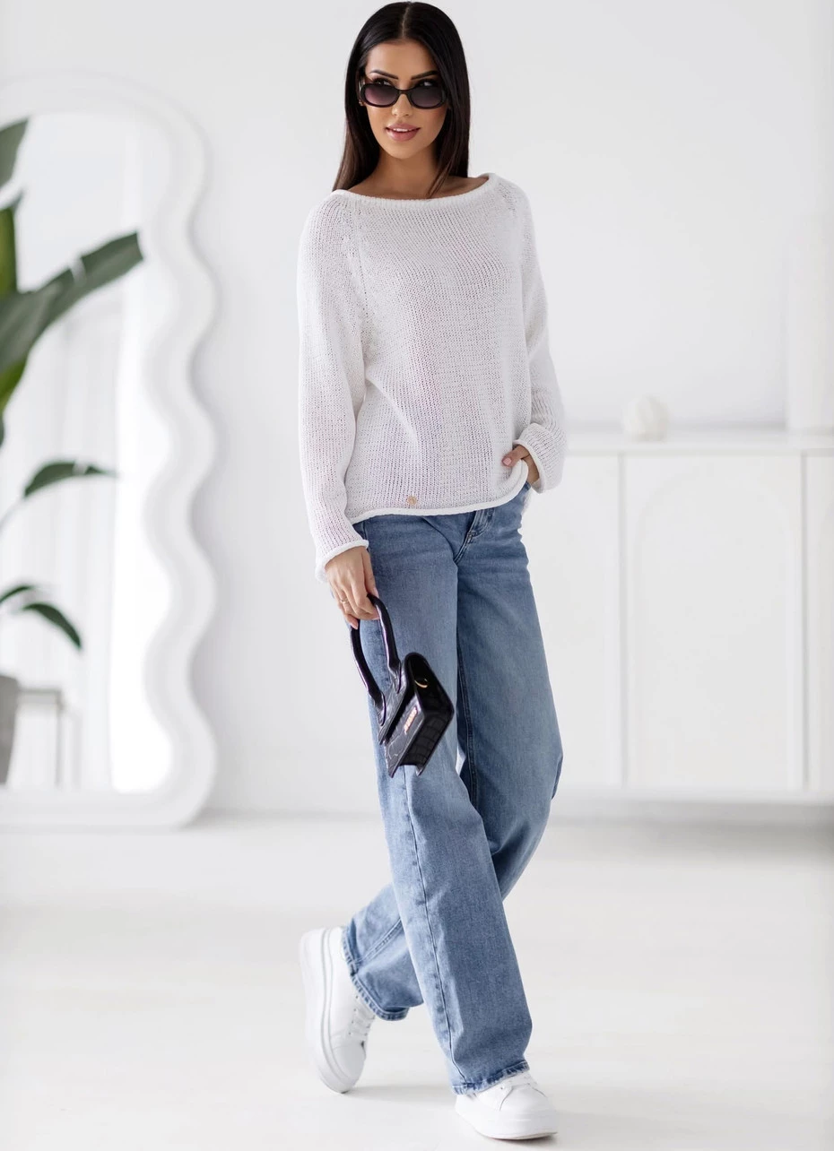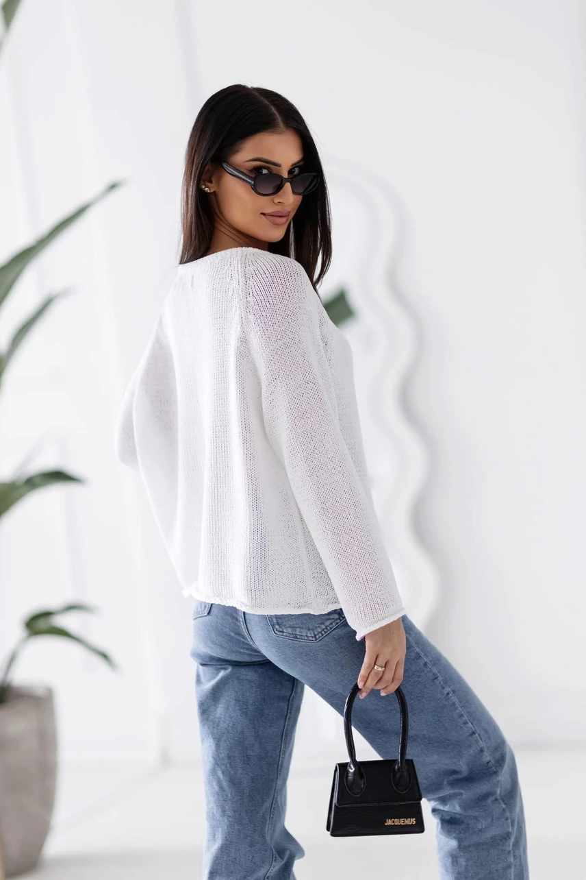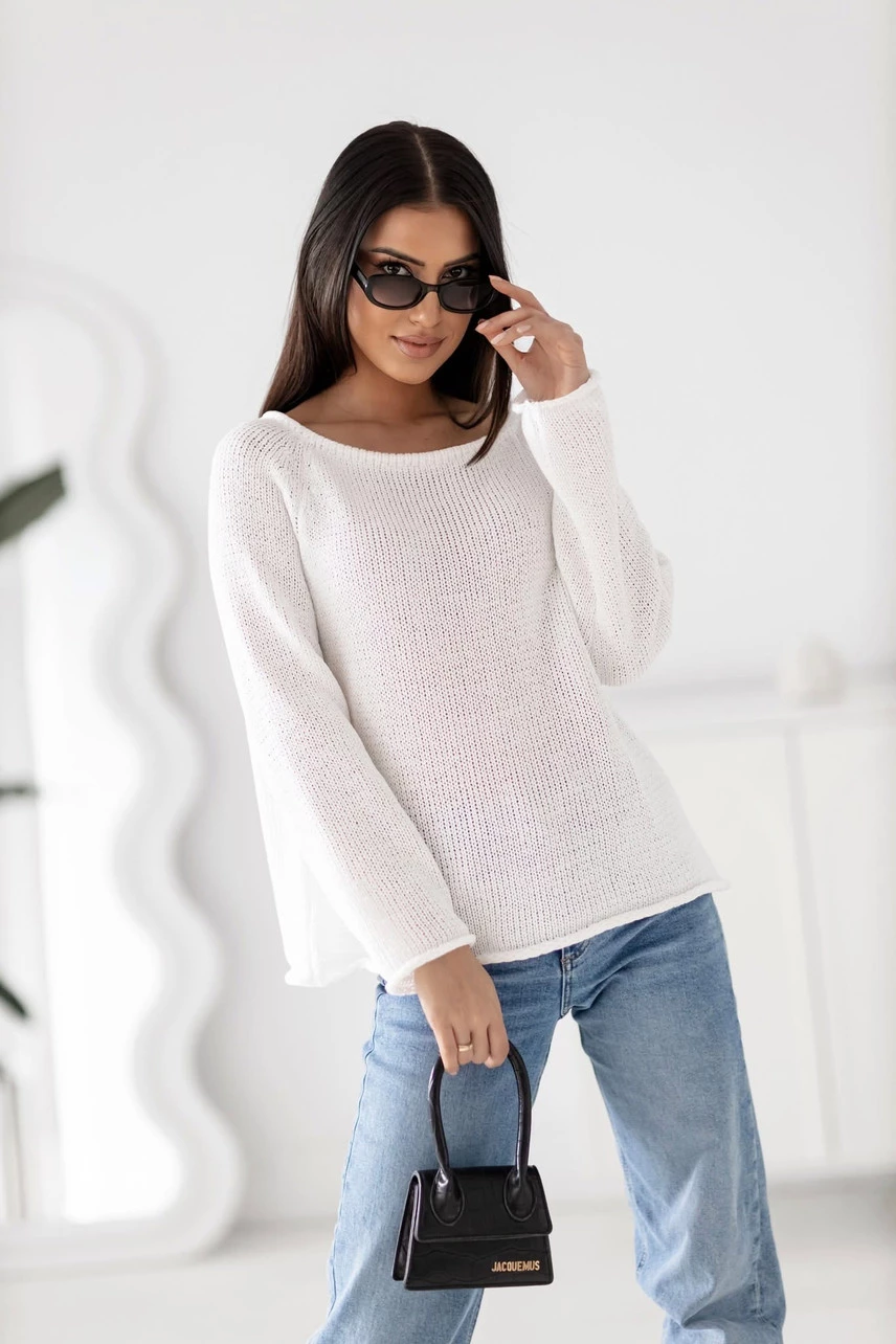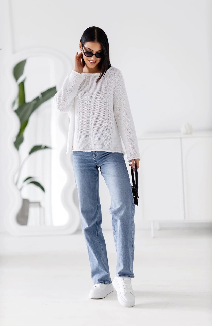 Bawełniany sweter MERIDA to model typu basic, wykonany z bawełnianej przędzy.