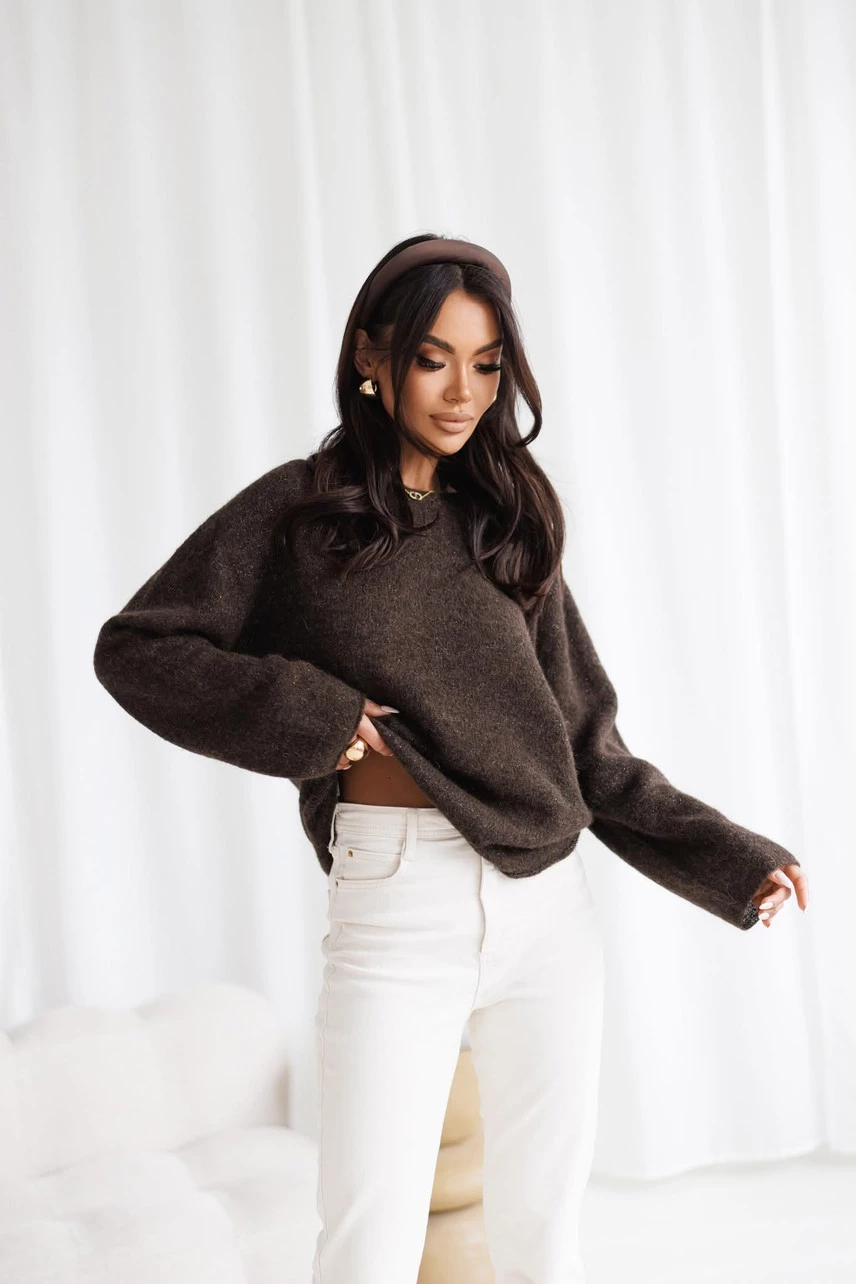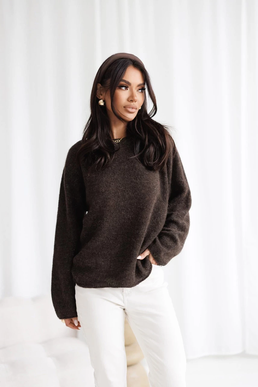 Sweter ADELE baby alpaka z lurexem Madame Sue, czekoladowy