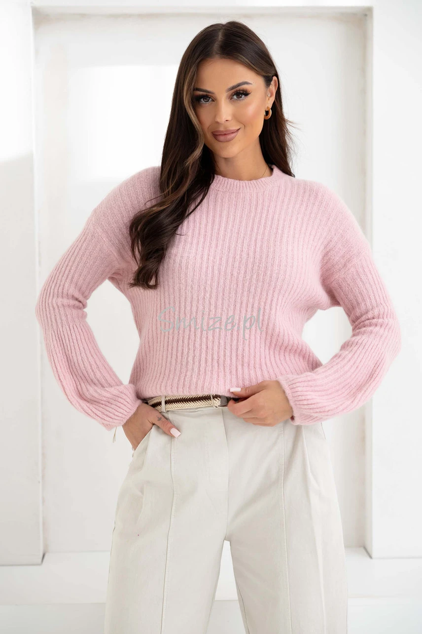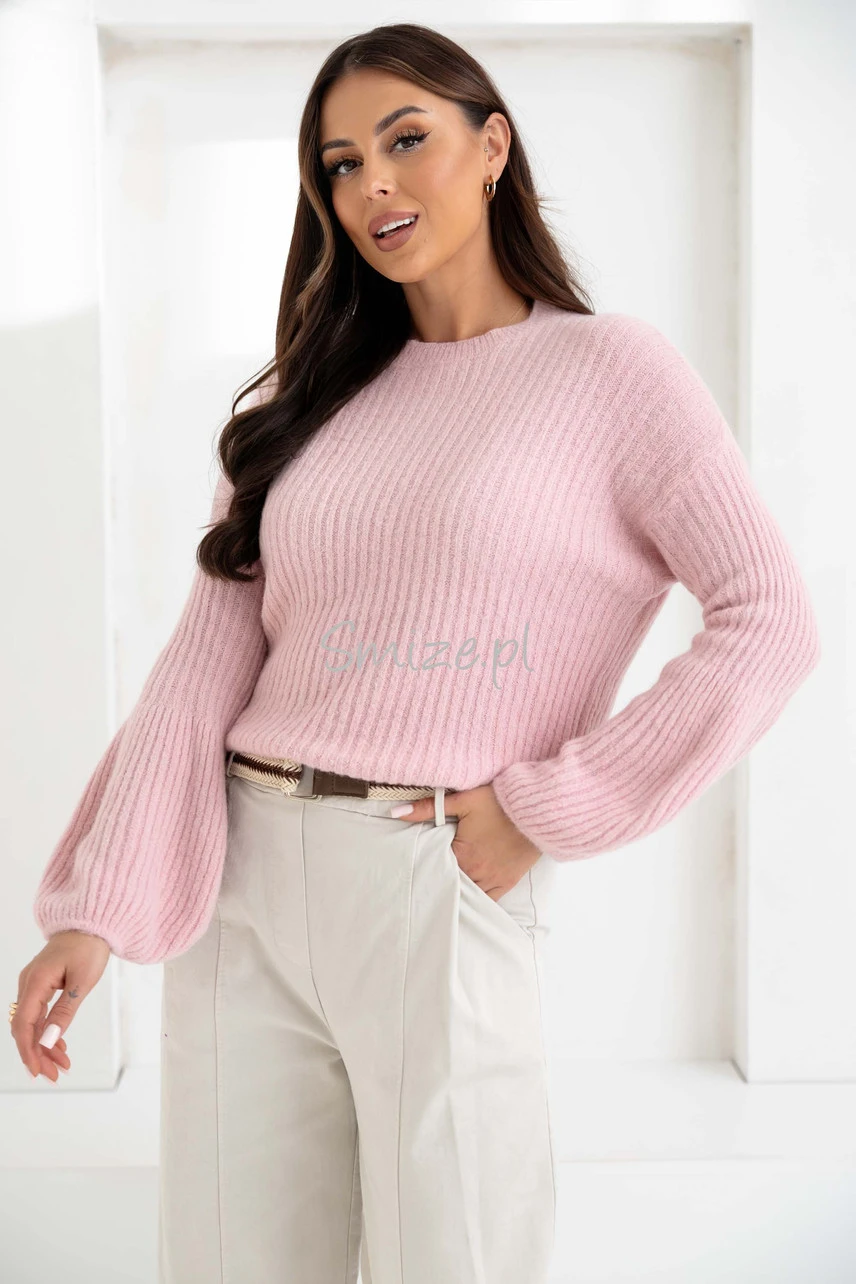 Sweter baby alpaka z dzwonkowymi rękawami, pudrowy róż