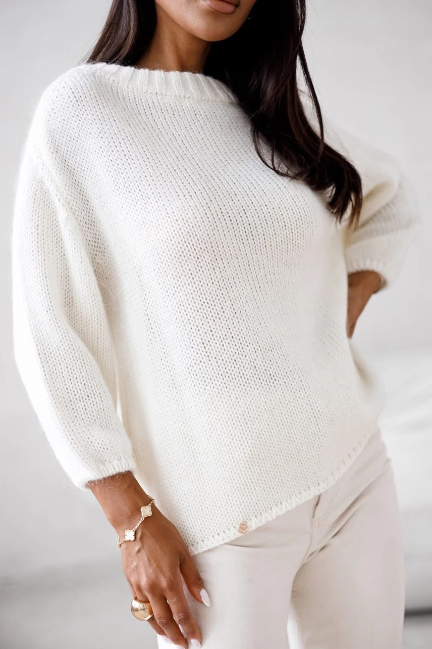 Sweter damski wełna moher premium LISS ecru Madame Sue