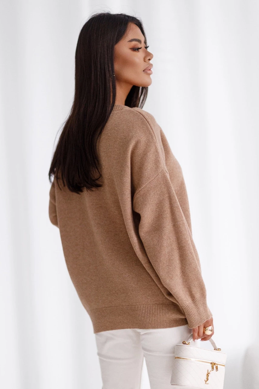 Rękawy, dekolt i dół swetra wykończone grubym ściągaczem.