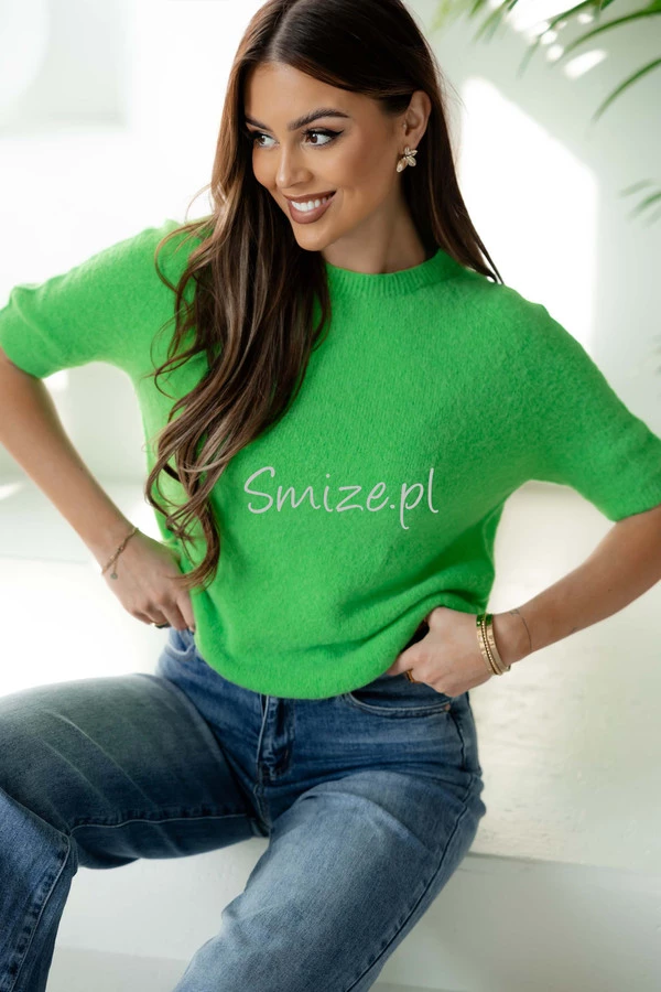 Sweter z krótkim rękawem baby alpaka GEORGINA zielony